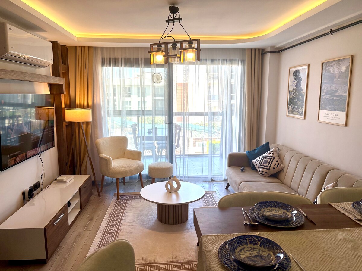 Du er velkommen til at bo i en ny hyggelig, ryddelig og fuldt renoveret bolig i det rolige og venlige kvarter Konak i Izmir. Boligen har alt, hvad du behøver for et afslappet og behageligt ophold. Boligen er lavet i grå-hvid-brune nuancer med søde små dekorationer. Det er meget tæt på byens centrum, og metrostationen ligger inden for gåafstand.