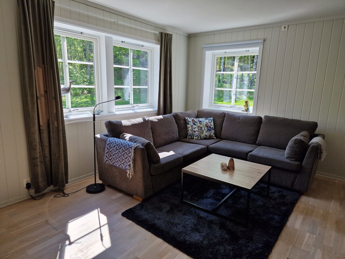 Tæt på byen i Sandefjord, og du føler stadig, at du bor i naturen. Gratis parkering uden for lejligheden. Busstoppesteder 2 minutters gang fra lejligheden. Du vil se fjorden fra vinduerne og både til Sverige. Det tager 8 minutter at køre til Sandefjord, 12 minutter til Larvik. Torp lufthavn ligger 15 min. Tag vandrestøvlerne på, og gå direkte ud på vandrestien og brug kyststien. Nyt 65 tommers tv og højhastighedsinternet. Når man er udenfor, er der mærkbar trafik, der passerer.