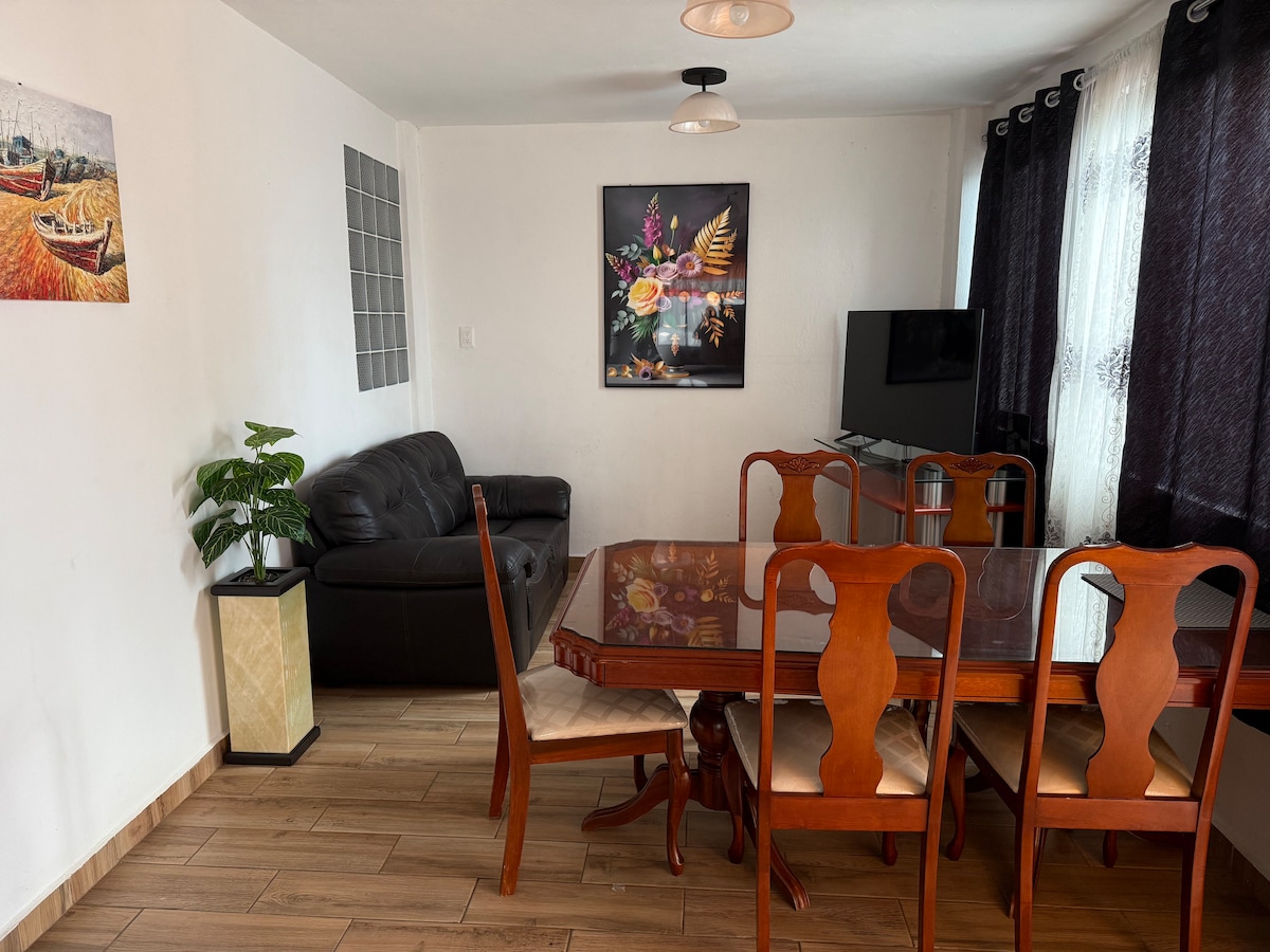 Nyd et roligt og afslappende ophold i vores hyggelige lejlighed, der ligger i hjertet af Tlalnepantla de Baz. Perfekt til rejsende, der leder efter et komfortabelt og funktionelt sted at hvile efter en dag med udforskning eller arbejde. Fuld lejlighed, 2 soveværelser (3 personer), komplet badeværelse, spisestue, køkken, ovn, minibar, skærm for at se dine foretrukne digitale platforme, højhastigheds-wi-fi, arbejdsområde, festfri plads. Ingen parkering