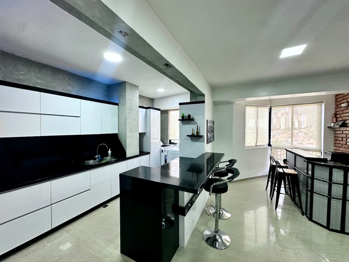 Nyd en rummelig treværelseslejlighed, der er designet med komfort og bekvemmelighed i tankerne, i hjertet af byen. Med moderne finish, forfriskende aircondition overalt og en indbydende atmosfære er det det perfekte sted for familier eller grupper, der ønsker at bo tæt på alt. Beliggende i nærheden af Sambil, så du har shopping, spisning og underholdning kun få minutter væk.