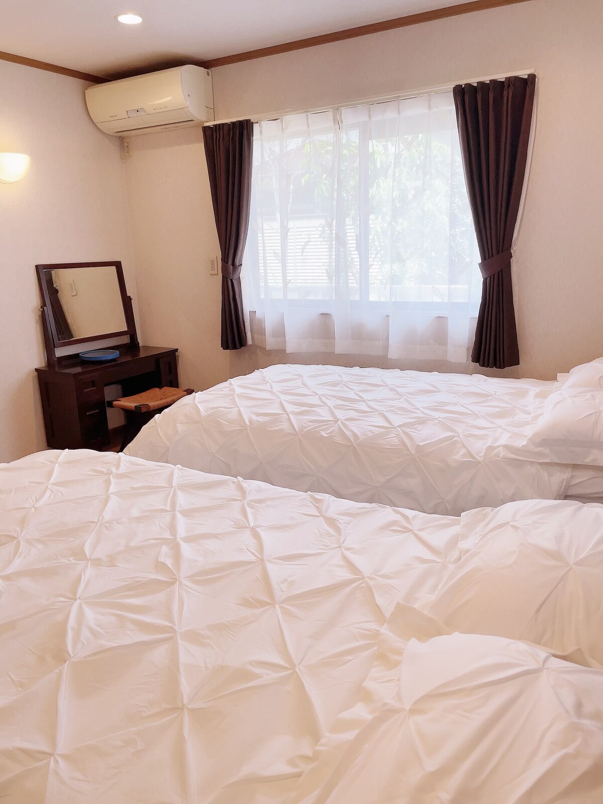Nyd et privat ophold i en licenseret bolig ved siden af en Lawson, der har åbent døgnet rundt. Kun 30 minutter med tog til Tokyo Station. Gratis cykler, wi-fi, Amazon TV og en gratis taxa fra Kawaguchi Station på indtjekningsdagen. Denne populære præfabrikerede bolig har ikke noget køkken, så du vil sandsynligvis spise ude eller bruge færdiglavede måltider. Værelset er enkelt med to senge og to små skriveborde – ingen ekstra faciliteter. Om aftenen kan du slappe af med din yndlingsdrink.