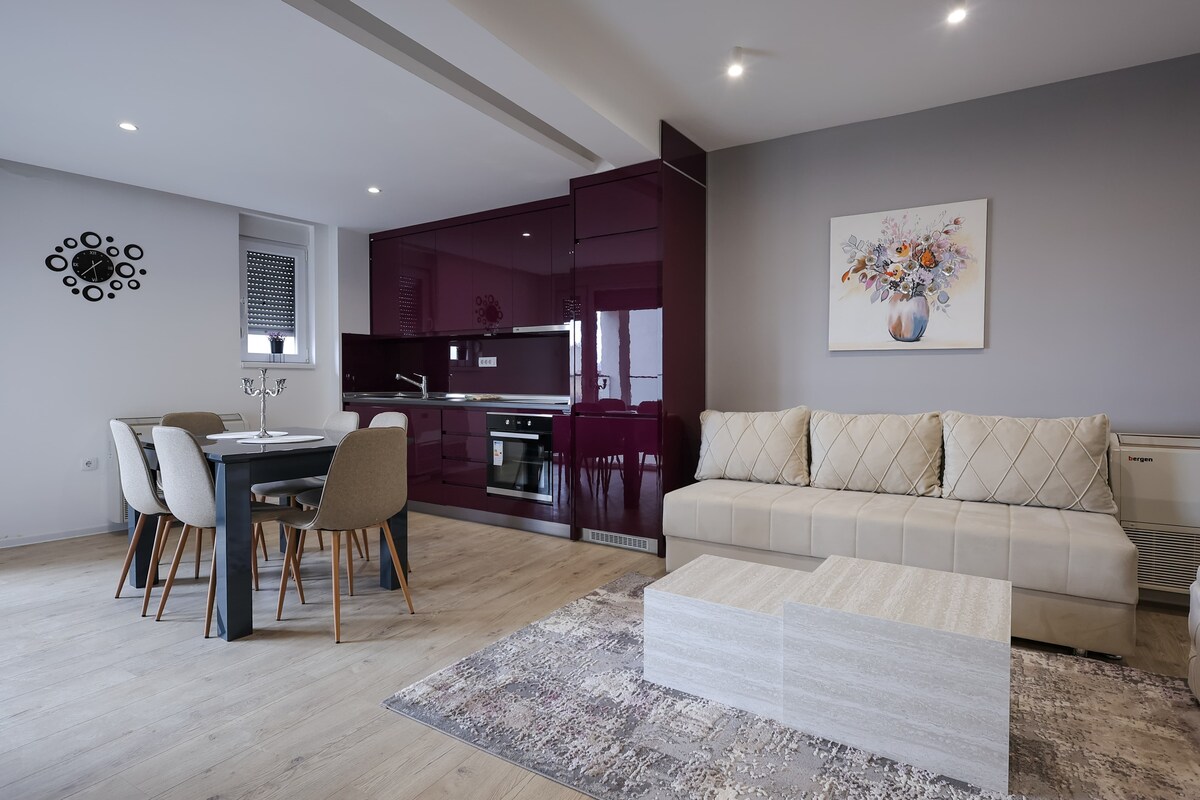 Moderne lejlighed med to soveværelser i hjertet af Prokuplje. Hvert soveværelse har en dobbeltseng, og der er en rummelig stue med sofa, et fuldt udstyret køkken og et badeværelse. Gæsterne har gratis parkering, hurtig wi-fi, aircondition og smart-tv. Perfekt til familier, par eller forretningsrejsende, der leder efter komfort og central beliggenhed.