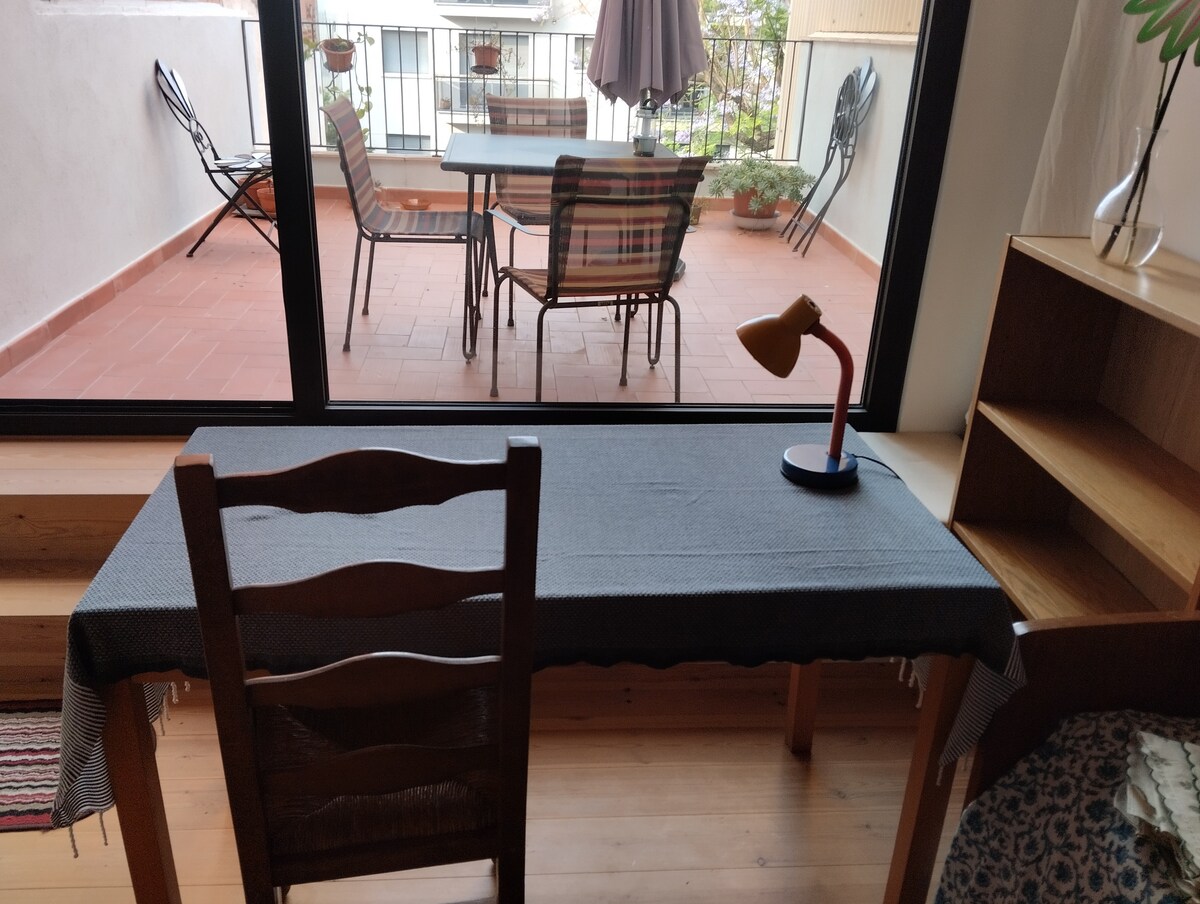 Hi! I'm Swedish artist and this is my second home. A cosy studio, with a small balcony, for 1-2 adults. It's situated in the heart of the beautiful Old Town, near shops, restaurants and bars. 10-15 min. walk to train and beach. The train takes you to Barcelona Sants in 1 hour and to Tarragona in 12 min. The house has elevator, strong WiFi and a shared roof terrace. Minimum 4 nights. Welcome! Madeleine