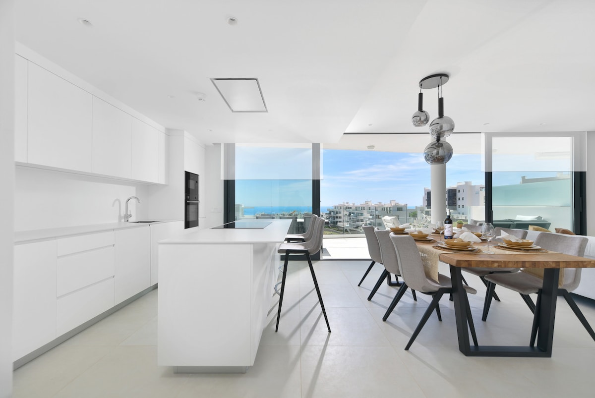 Mara's Apartments - Scandinavian Luxury - Sea View er en lejlighed med 2 soveværelser og 2 badeværelser, der er smukt indrettet i elegant skandinavisk stil. Nyd en afslappende udsigt over havet og bjergene fra den eksklusive urbanisering Higuerón West. Gæster har adgang til (mod betaling) Higueron Sport Club, som tilbyder 12 paddlebaner, en spa, fitnesscenter, restauranter og barer. Ejendommen omfatter også 2 private garager og swimmingpools i urbaniseringen.