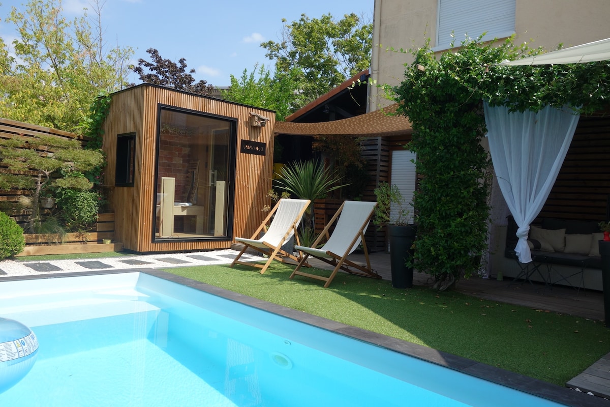 Vores Urban-House Toulouse: Bed and Breakfast, Studio eller Lejlighed. Et sted "udenfor tiden" ... at glemme, omkring en indretning i egetræ - gummi og klart hvidt, og den foreslåede fantasi af hans have. Ren atmosfære, zen-holdning. Velvære og sindsro i naturen i hans japanske åndshave. Ideel til afslapning, afslapning, genopladning af energi og positiv refleksion ... i et bymiljø. Sydvestlig have, solskin fra sent om morgenen til aften.