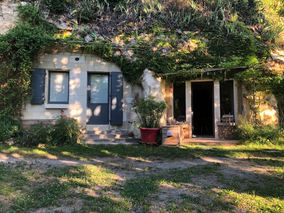 Charmerende gîte, delvist troglodytisk, ideelt beliggende