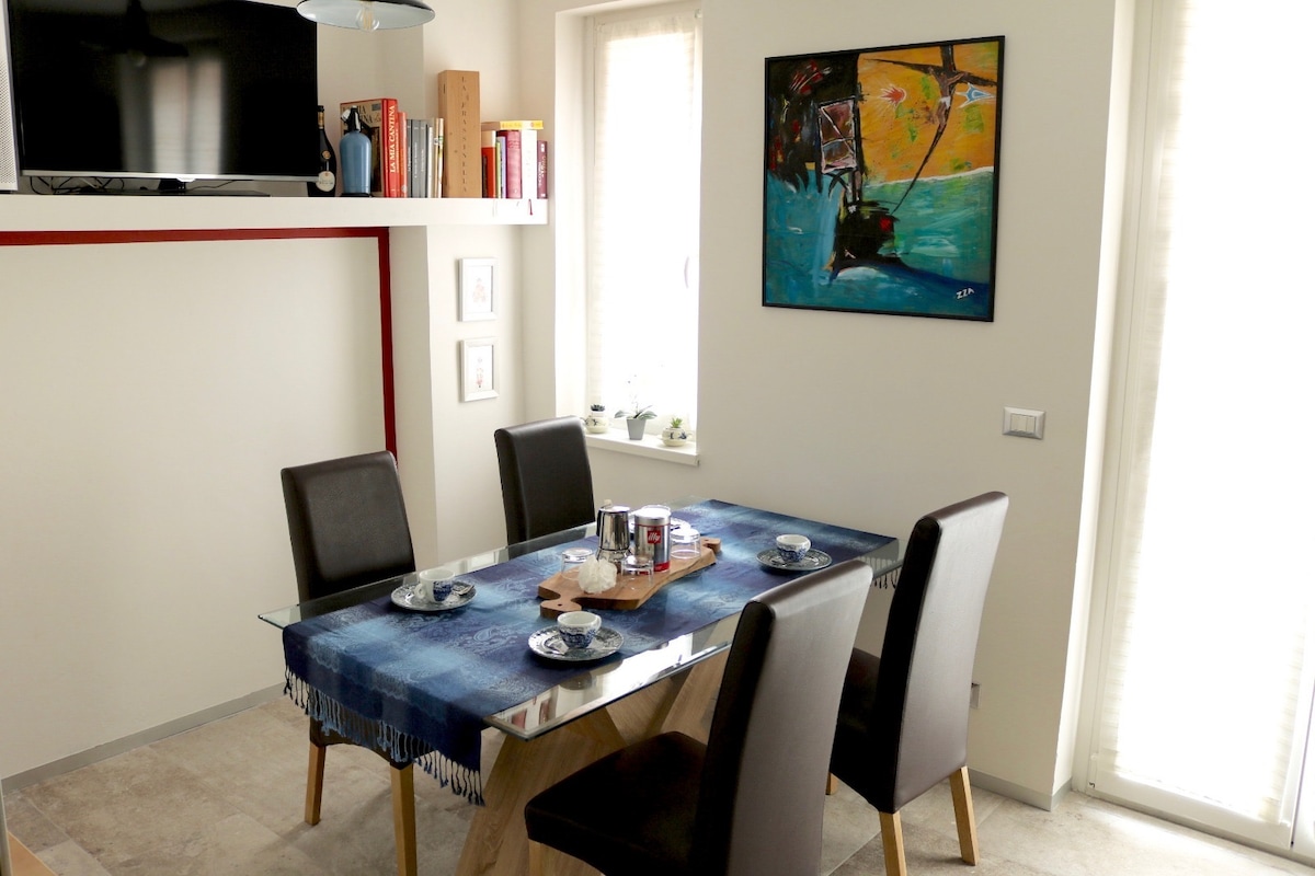 Tiny apartment in una zona centrale e ben servita. Come benvenuto il Prosecco o un caffè o una tisana per farvi iniziare con il piede giusto il vostro soggiorno. Non preoccupatevi se vi siete dimenticati il phon per i capelli,lo spazzolino o le ciabatte, ci abbiamo pensato noi! Per garantirvi un buon riposo non abbiamo badato a spese con il matrimoniale Tempur. Se ti va e la permanenza è stata di tuo gradimento condividi una foto oppure un selfie con la sedia Kartell, simbolo del nostro Mr Red!