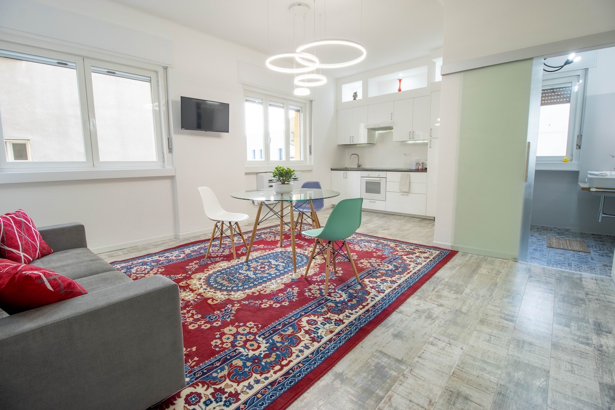 Nel appena ristrutturato palazzo storico Casa Romano, si trova Casa Romano Luxury Green Apartments a quattro stelle con tre appartamenti su piazza della Borsa. Tutti gli appartamenti sono accoglienti e arredati nel pieno rispetto della sostenibilità ecologica. Tutti gli ambienti sono accessibili sia ai portatori di handicap che a famiglie con bambini. L'appartamento RUBINO è il più grande, con 132mq. E' situato in terzo e ultimo piano. Rilassati in questo spazio tranquillo nel centro di Trieste.