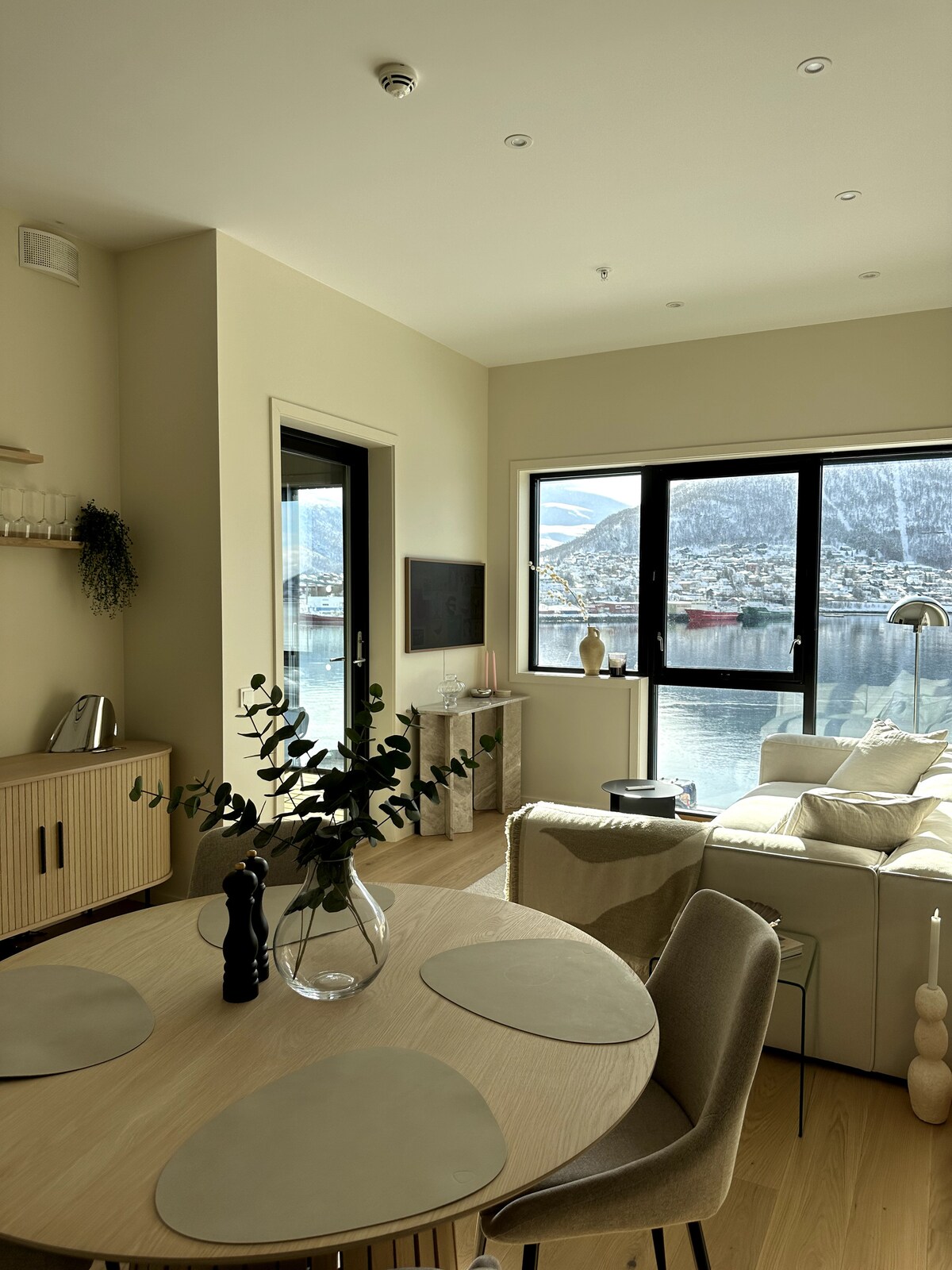 Perfekt lejlighed, lige i centrum, kort afstand til alt! "Wow, ligesom Upper East" udtrykker flere gæster. I en ikonisk og fredet bygning, oprindeligt bygget i 50'erne. Flot udsigt. Fuldt møbleret og optimalt udstyret til et behageligt ophold, herunder længerevarende ophold. Lejligheden er på ca. 60 m². Lejligheden og Tromsø by har nu 5G, fremtidens teknologi. Det giver en fantastisk hastighed til streaming af video og surfing på nettet++.