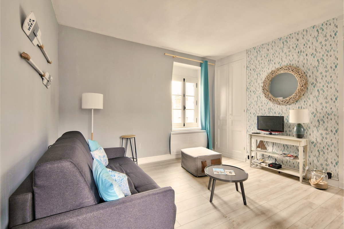 Agarrus Rentals byder dig velkommen til Arlette's i centrum af Trouville: en lys, fuldt renoveret 40 m² lejlighed med udsigt over havet og Touques-floden Alt er inden for gåafstand: strand, restauranter, kasino og togstation Perfekt til et vellykket ophold ved havet for 1 til 4 personer + en barneseng og høj stol Aircondition, tv, fiber wi-fi, opvaskemaskine, vaskemaskine, ovn, mikrobølgeovn, induktionskogeplade, emhætte, køleskab, Nespresso-maskine, brødrister, kedel...