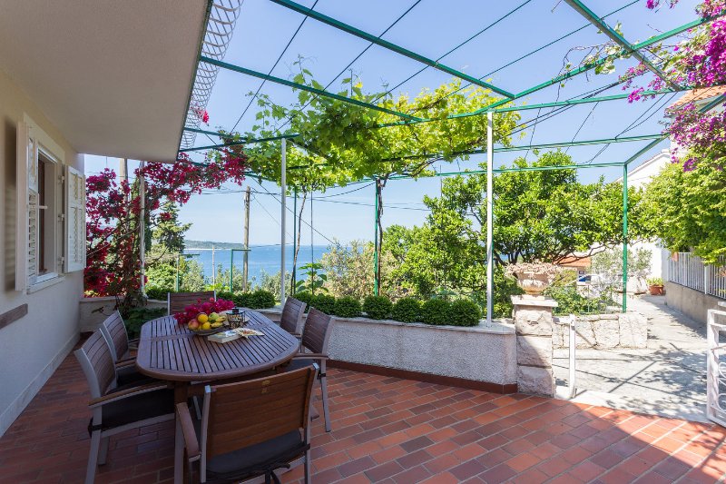 Huset "TRSTENO" består af to etager, kan rumme maks. 5 personer og har en dejlig terrasse med dejlig havudsigt. På første sal er der en fantastisk ny renoveret soldæk med bruser og liggestole med dejlig havudsigt. Supermarkedet ligger 15 minutters gang fra huset. Venlige værter vil give dig gavekurve fyldt med frugt og grøntsager, der dyrkes i deres have. For alle gæster, der opholder sig i huset mere end 3 dage, tilbyder ejeren gratis transport med båd til Lopud-øerne