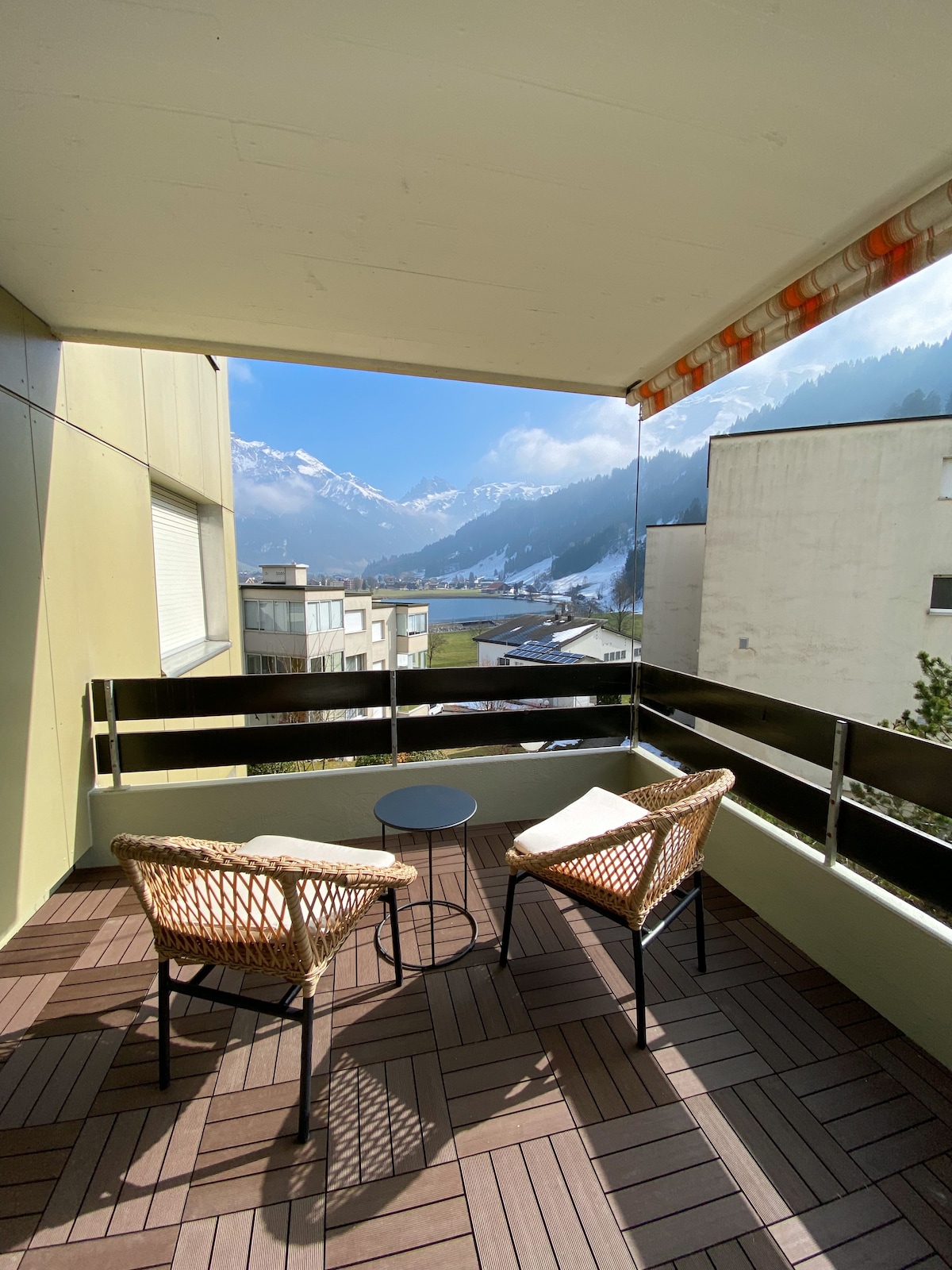 Perfect location in Engelberg: Just a 3-minute walk to the Titlis gondola and 5 minutes to the town center and train station. The cozy, renovated studio features a modern alpine style with stylish accents. It includes a modern bathroom and a balcony with stunning mountain views, perfect for relaxing mornings. NOTE: The studio is located near a road and in an older building with thinner walls, so it does not offer complete peace/quiet, but it has many other advantages. Free parking is available.