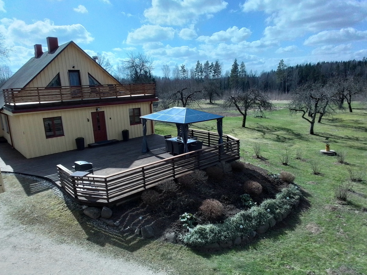 Et fredeligt tilflugtssted ved havet, hvor tiden går langsommere, og naturen tager over. - Stille beliggenhed ved havet omgivet af natur - Kun 500 meter fra Østersøen – Nem adgang fra Riga, Letlands hovedstad (65 km) - Stort privat område (1,1 hektar) – Velegnet til retreats, familieophold og små fester - Banketsal for op til 35 gæster - Træfyret sauna og spabad - 6 gæsteværelser, 17 sovepladser Tag hele familien med til dette fantastiske sted med masser af plads til sjov.