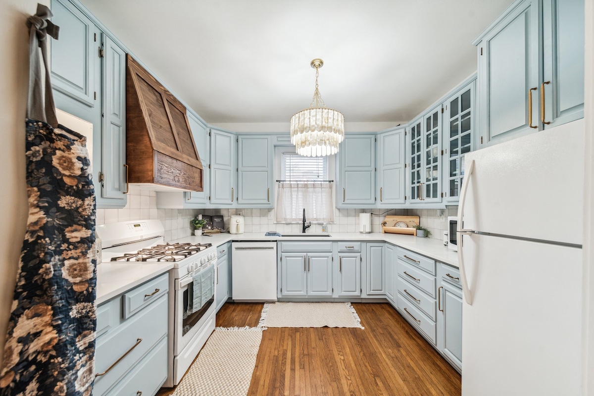 Denne bungalow ligger i hjertet af byen og har masser af plads til at slappe af, slappe af og have det vidunderligt. Denne bolig ligger få minutter fra det populære Gathering Place, Downtown Tulsa og indkøbs- og spisestedet Brookside. Den er den perfekte beliggenhed, hvor du kan nyde alt det bedste, Tulsa har at tilbyde. The Blue Bungalow giver subtile antydninger af et hjem med detaljer som kaffe, madlavningsartikler samt behageligt sengetøj og puder for at gøre dit ophold meget mere behageligt.