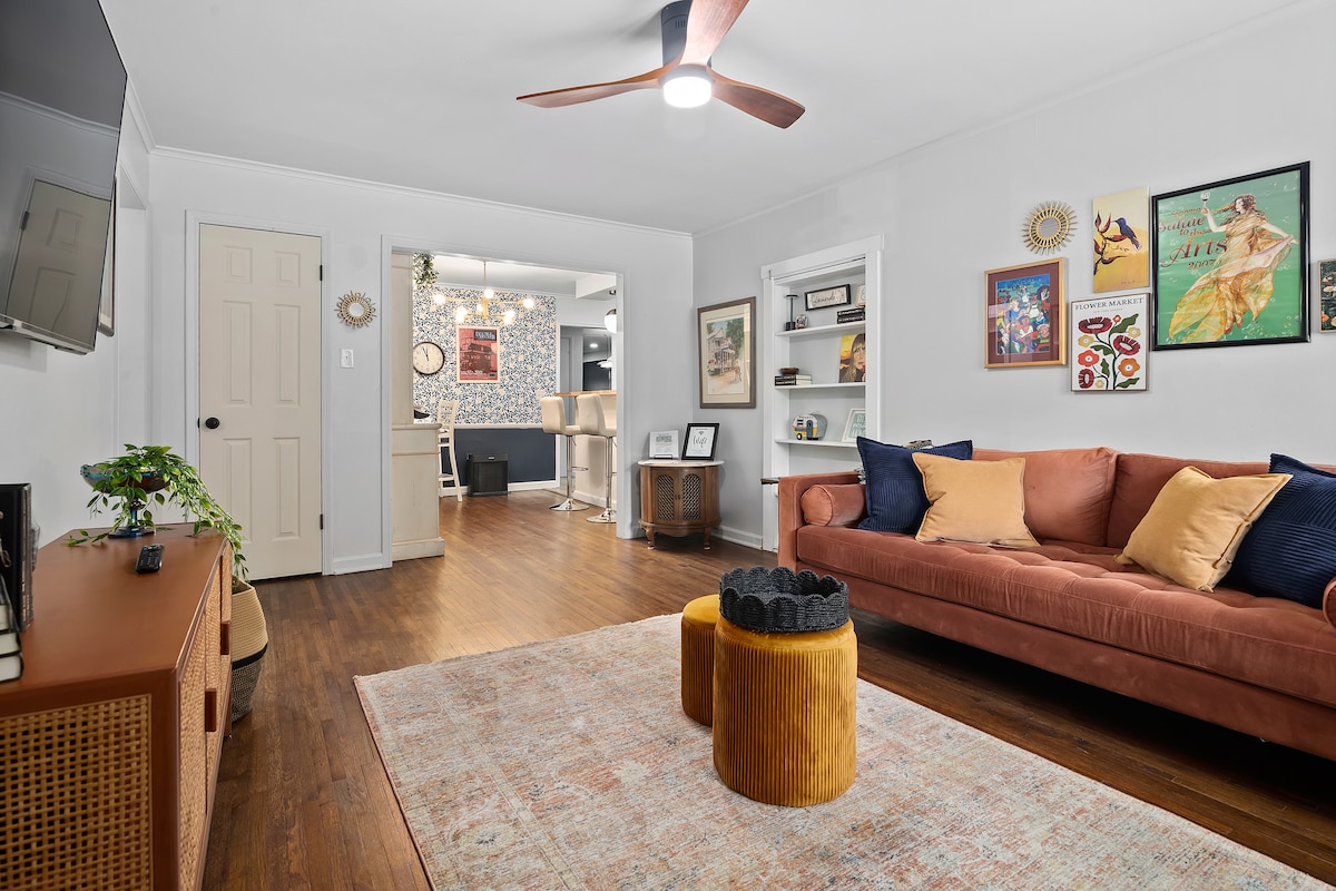 Velkommen til dit fredelige Tulsa-tilflugtssted – en smukt indrettet bolig, der ligger i nærheden af centrum, BOK, Riverside og The Gathering Place. Vores seng er usædvanlig komfortabel, boligen er rummelig, og loftet ovenpå tilføjer et strejf af charme. Nyd trætopdækket og spabadområdet! Og gå til Tulsas bedste kaffebarer, der ligger blot et par blokke væk. Uanset om du er på besøg i forbindelse med et event, udforsker byen eller blot leder efter et fredeligt sted at være, vil du føle dig hjemme fra det øjeblik, du ankommer.