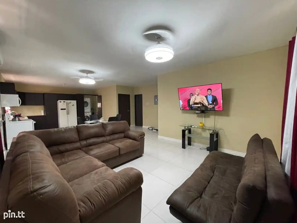 Velkommen til dit andet hjem i Tacarigua i Trinidad. Denne nybyggede lejlighed med 2 soveværelser tilbyder et rent, moderne design i et roligt og sikkert nabolag, der er ideelt for både forretningsrejsende og feriegæster. Nyd en fuldt udstyret bolig med et elegant badeværelse, hyggelige soveværelser og en fredelig stemning overalt. Beliggende kun 12 minutter fra Piarco International Airport og 24 minutter fra Port of Spain, med nærliggende butikker, madsteder og nem transportadgang. Slap af i komfort og stil!