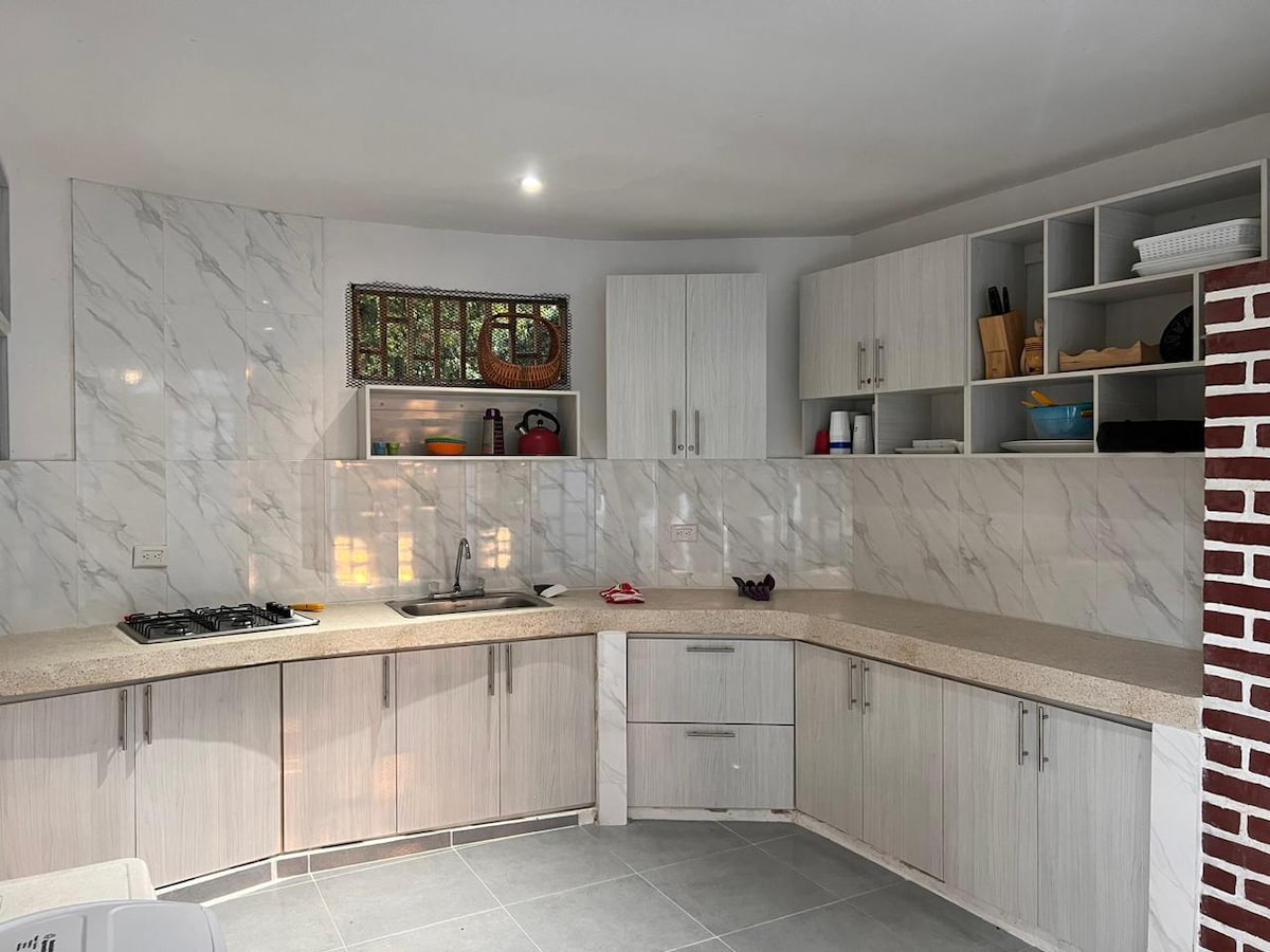 Hvil blandt træer, og vågn op til lyden af naturen i dette lille tropiske hus, der ligger i et roligt og grønt område i Turbaco, kun 20 minutter fra Cartagena. Ideel til en parferie, en pause fra storbyrytmen eller et par dages fjernarbejde med godt signal og ingen distraktioner. Denne lille bolig er designet med naturlige materialer og detaljer, der er skabt til komfort, og den tilbyder dig en unik oplevelse: intimitet, ro og fred.