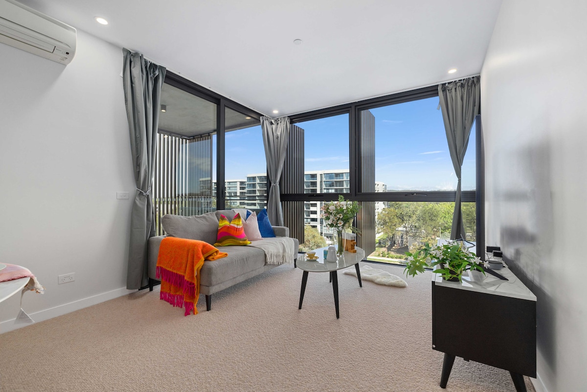 @Canberra Charm: Elegant 1BR i CBD med parkering og udsigt