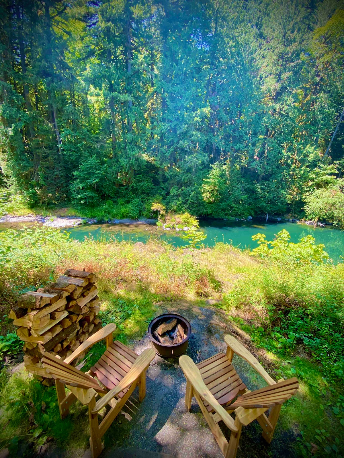 Slap af i denne unikke og rolige bolig. Denne bolig med 2 soveværelser ligger på en klippe med en vidtstrakt udsigt over området, der grænser op til Clackamas-floden, på en ejendom på en hektar lige uden for Portland. Det er blevet fuldstændig opdateret med et nyt gourmetkøkken, spa-lignende badeværelse, master med en privat balkon, dedikeret arbejdsplads og en kæmpe terrasse til at nyde alt, hvad naturen har at tilbyde. Den øverste gård er fuldt indhegnet til din hvalp, og der er privat gangsti til floden.