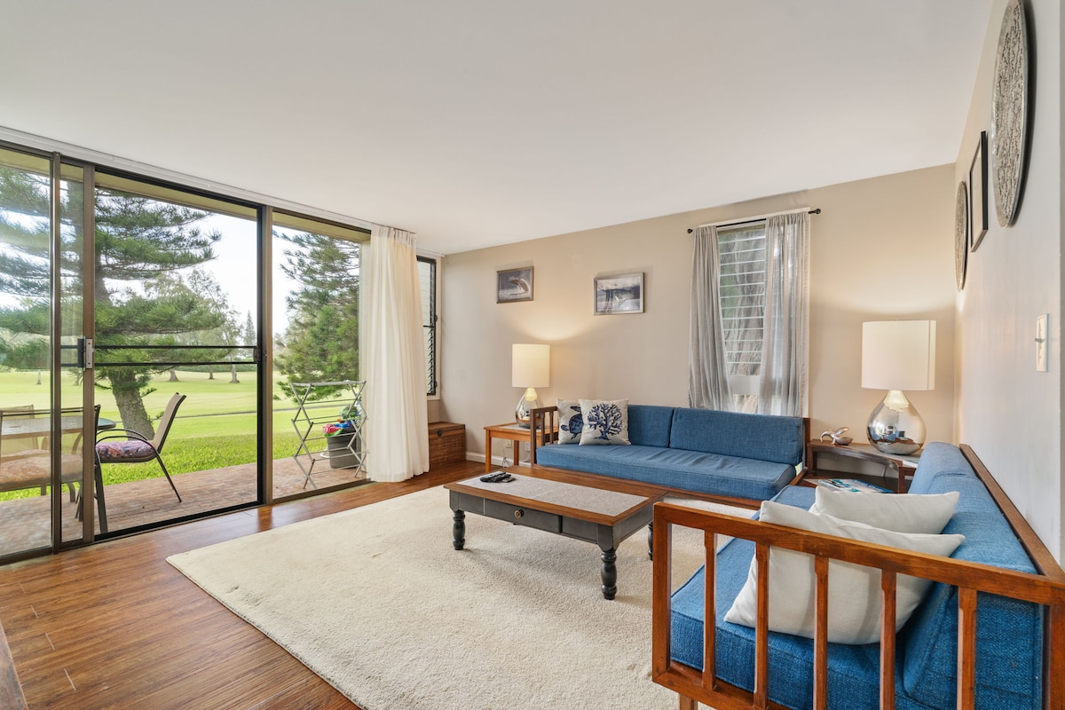 Punaluu- a breathtaking white sandy beach, where you can swim & snorkel all day or jump in the saltwater pool. GROUND FLOOR oceanfront 1 bedroom 1 bath renovated unit with a coastal vibe. Wake up to a beautiful sunrise, walk on the quiet beach, lounge through cocktail hour, eat dinner outside and look for turtles at golden hour. One of the largest floor plans 720 sq ft inside plus 240 sq ft lanai. From the moment you enter the front door a calm & tranquil view of ocean & palm trees is yours!
