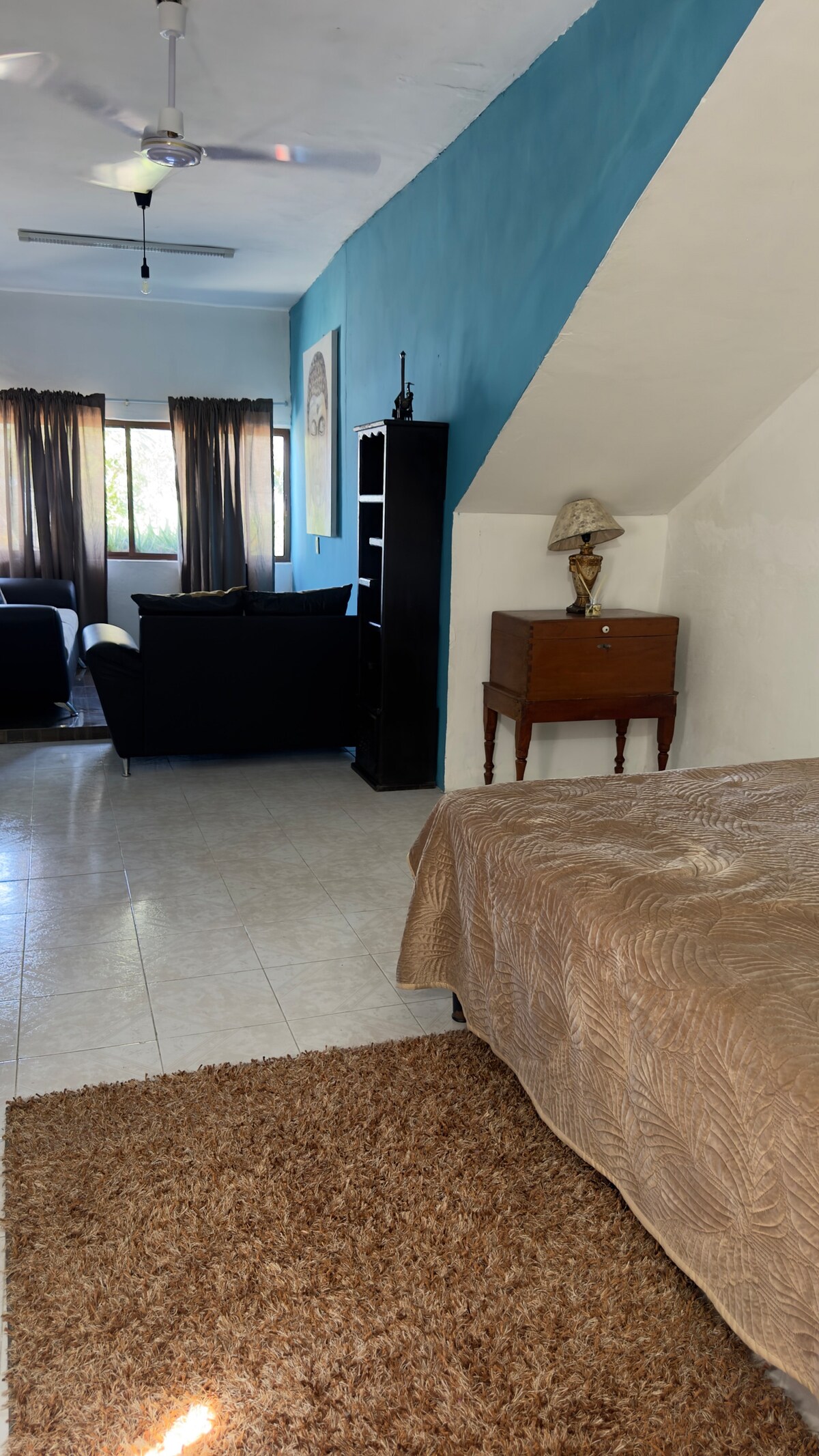 Nyd nem adgang til Centro de Tuxtla Gutiérrez fra denne bolig, der er perfekt beliggende i højden af El Parque de La Marimba, kun 5 blokke fra dette sted, der skal ses Dette rum er et værelse med dobbeltseng og privat badeværelse til op til to personer, der er placeret inde i en fireværelses lejlighedsbygning, en studiolejlighed og et loft Køkken- og vaskeområder deles med lejere og andre gæster. Medbring dine forsyninger til madlavning eller vask