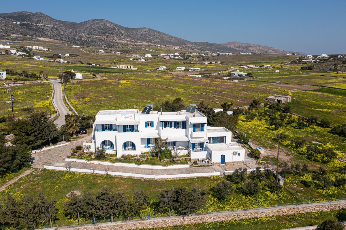 Our point of reference is the sea, the aura that the place exudes and the Cycladic light. Etherio is located on a hill, owning its characteristic name. From our apartments you will enjoy the view of the village Piso Livadi, the small traditional church of Agios Nikolaos and the magical color reflections of the sea horizon that is extended to Naxos Island, an authentic "window to the Aegean". No one can resist to the Cycladic view with the alterations of light from sunrise to sunset.