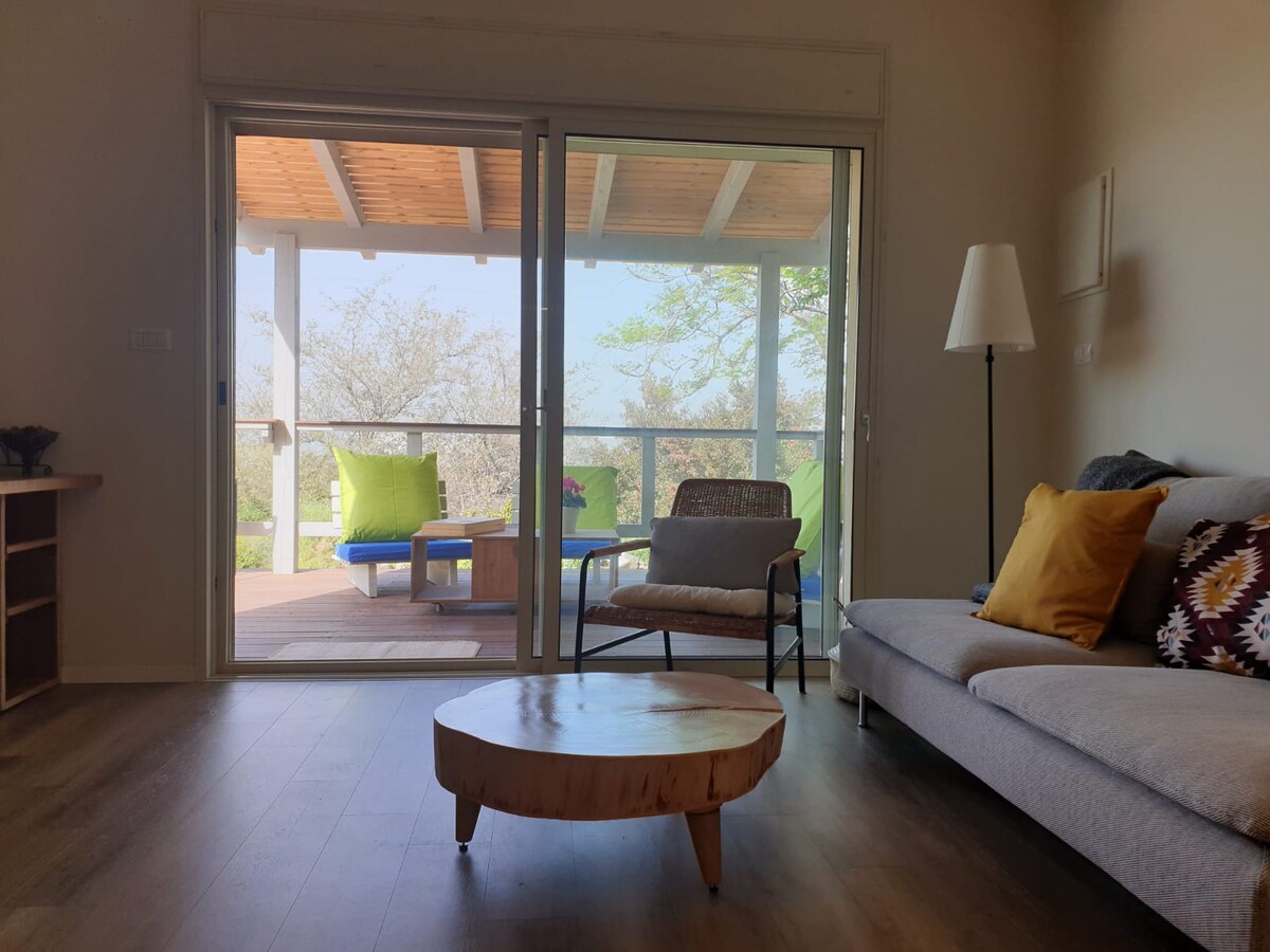 Vågn op til udsigt over trætoppene i vores romantiske gæstehus for par. Omgivet af natur, med store vinduer, privat balkon, fuldt udstyret køkken og gennemtænkt design. Perfekt til afslapning, udforskning eller til at blive hjemme. Skovvandringer, fantastiske solnedgange i Galilæa og total privatliv venter. Ekstraordinær renhed og komfort indenfor. Enestående lokale tips fra en superhost, der virkelig går op i det. ★ "Pletfri, magisk, ud over forventningerne – den bedste Airbnb-bolig, vi har boet i. Perfekt til par og naturelskere"