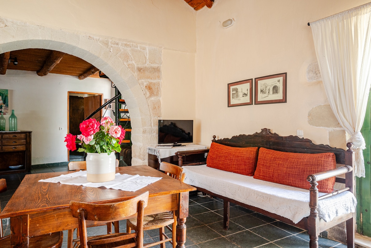En traditionel bolig i to etager med originale dekorative elementer, håndlavede møbler samt gulve og overflader i træ og marmor. Ideel til par eller to venner, der ønsker at opleve det originale kretensiske liv i et helt fredeligt, stressfrit og miljøvenligt miljø. Beliggende kun en halv time væk fra Chania centrum, tæt på mange strande og til store historiske og naturlige seværdigheder! Wi-fi, to luftforhold til rådighed! Der er også to cykler, så du kan udforske den omkringliggende region.