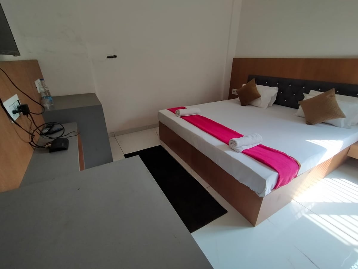 Enjoy a comfortable stay in this cozy hotel room, just few km from the famous Mahakal Jyotirlinga and Ujjain Railway Station, offering easy access to local attractions. The room features a double bed, private washroom, and all essential amenities for a relaxing experience. Located only 2 km from the bus stand, and with taxi services available to Indore Airport, your convenience is our priority. Perfect for both pilgrims and travelers seeking comfort and accessibility. NO UJJAIN LOCAL ID ALLOWED