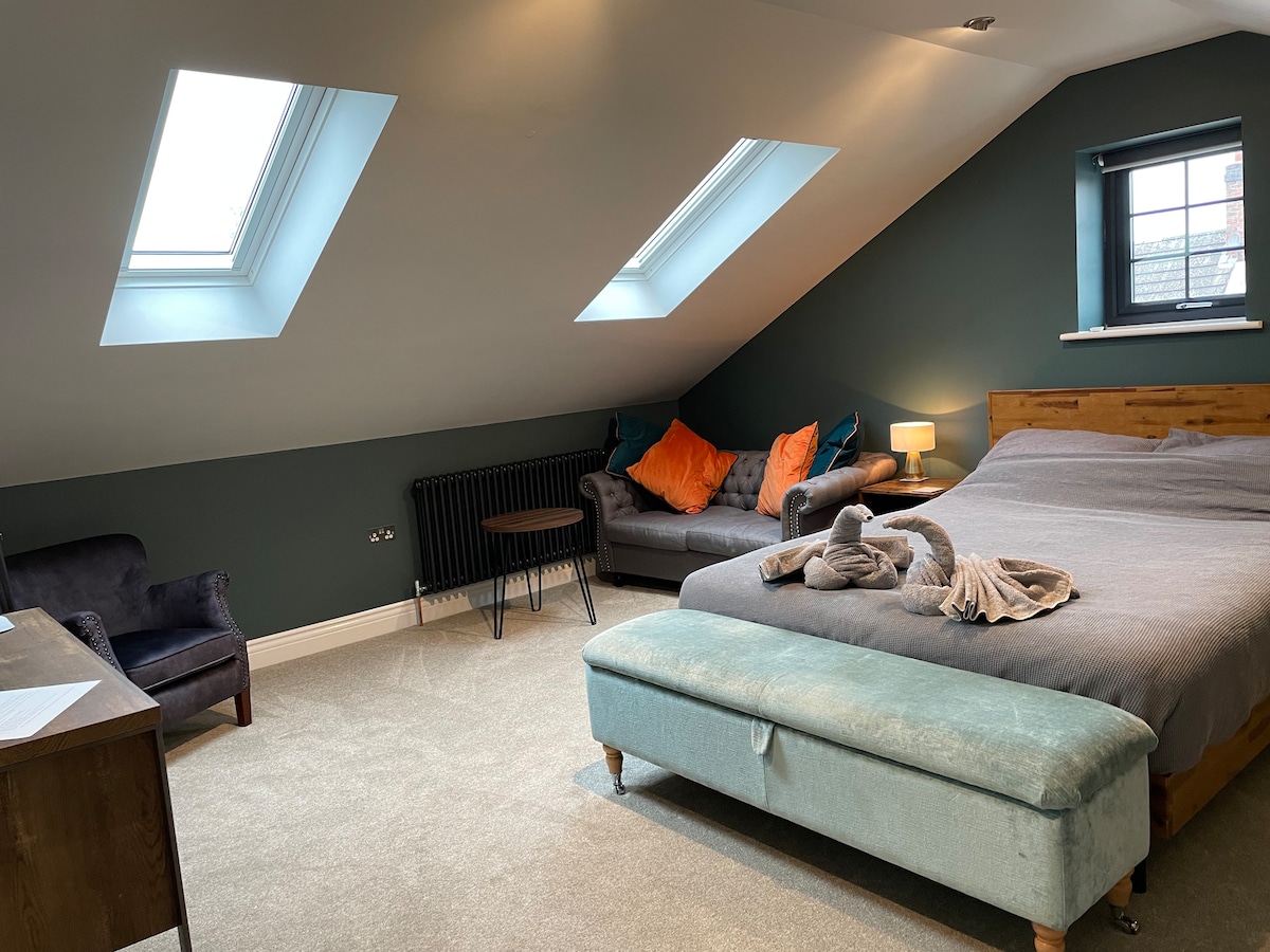 Relax in luxury at Rainbow House and enjoy peaceful surroundings. Featuring a 50sqm bedroom with a king sized bed and en-suite bathroom, Downstairs enjoy the cozy snug with a bookshelf and smart TV. Upstairs is workstation with an Italian leather chair to work in comfort, a relaxing reading chair, sofa and mood lighting, along with six large velux windows creating an airy feel throughout the day and night. This beautifully designed and sympathetically restored barn conversion features many original features, and Rainbow House dates back to 1908 where it was an integral part of the town as Rainbow Farm providing a milking place for the local milk man Fred Rainbow. This lovely property is situated 2 minutes walk from Lutterworth town centre with various shops, cafe’s, restaurants and pubs, all within easy walking distance.