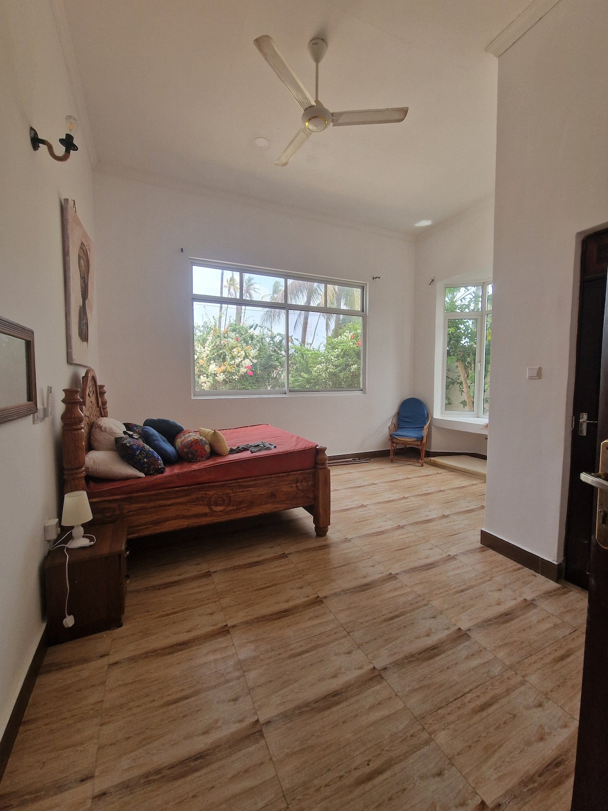 Perfect for families or groups of friends. This luxury villa offers a spacious kitchen, living room, and a power generator. Enjoy a large garden with sun loungers, 3 ensuite bedrooms plus a guest bathroom, washing machine, iron, hair dryer, and towels. A private cook and food supplier can be arranged. Just a 2-minute walk to a beautiful white-sand beach and turquoise ocean — an unbeatable location on Zanzibar.