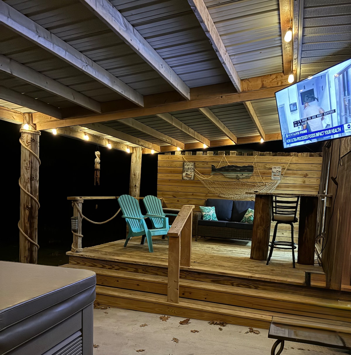 Flygt fra dit travle liv, og besøg Dongola Bay for at slappe af. Dette er det perfekte sted for store familier og venner at samles og slappe af i private og rolige omgivelser. Vi har noget for enhver smag her i Dongola Bay, fra det store hus, spillelokale, spabad, 2,5 hektar dam, strandområde, bålplads og over 2.000 kvadratmeter udendørs terrasseplads. Vi ligger i nærheden af Shawnee Hills Wine Trail, Giant City State Park, Ferne Clyffe State Park, Bald Knob Cross og andre fantastiske seværdigheder.