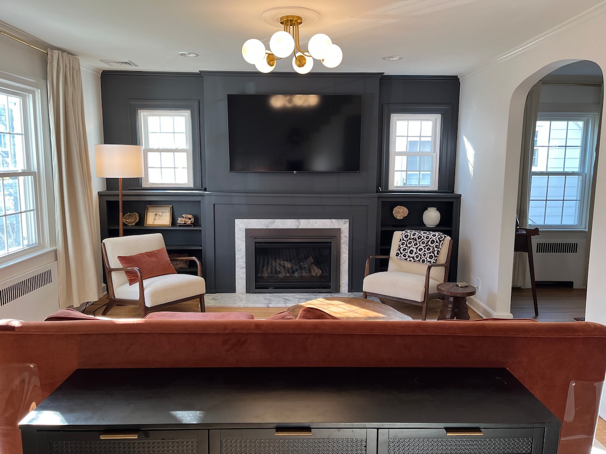 Kom og oplev vores nyligt renoverede hjem med helt ny installeret aircondition, få skridt fra vores charmerende centrum og direkte tog til NYC. Bevidst maksimalistisk indretning med masser af kunst i hele huset. Mørklægningsgardiner i alle rum og TempurPedic-madrasser af hukommelsesskum. 🌿De grønne områder her på hvert hjørne føles som en frisk brise. Boligen er gennemført med omhu og blander vintagecharme med moderne designdetaljer, hvilket skaber det ideelle rum til både afslapning og inspiration.