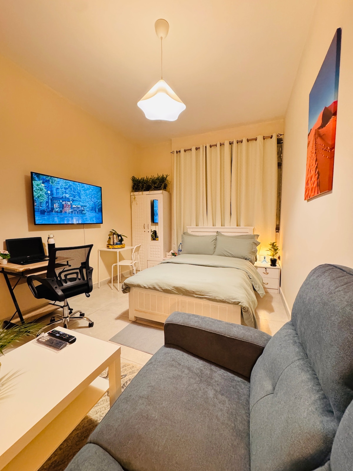 A peaceful HomeStay Rentals for your StayCa with Partner, we have Studio Room with Attached toilet and kitchen location in the heart of Abu Dhabi City, UAE Inkluderende - Delt aircondition - Wi-Fi-adgang - Køkkenet er udstyret med et lille køleskab og et bærbart gaskomfur og mikrobølgeovn. - Bærbar vaskemaskine samt tørrestativ - Sideskuffe og skab Stedet er tilgængeligt, tæt på busstoppestedet, indkøbscenteret, Baqala's, Resto & Mosques.