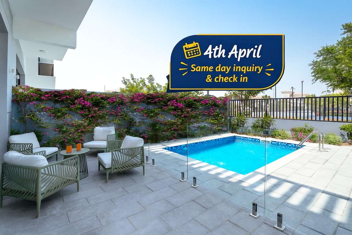 Nyd et roligt ophold i et smukt hus på en privat gård omgivet af træer og grønne områder med en privat pool. Stedet er ideelt for familier og dem, der ønsker at slappe af væk fra byens travlhed. Huset er fuldt udstyret (3 komfortable værelser, køkken, udendørs siddepladser, grill). Tæt på faciliteter og hovedveje, det er en nem køretur fra Dubai, og det tilbyder en fantastisk udsigt over naturen. En autentisk landlig oplevelse med luksus og komfort midt i ørkenen