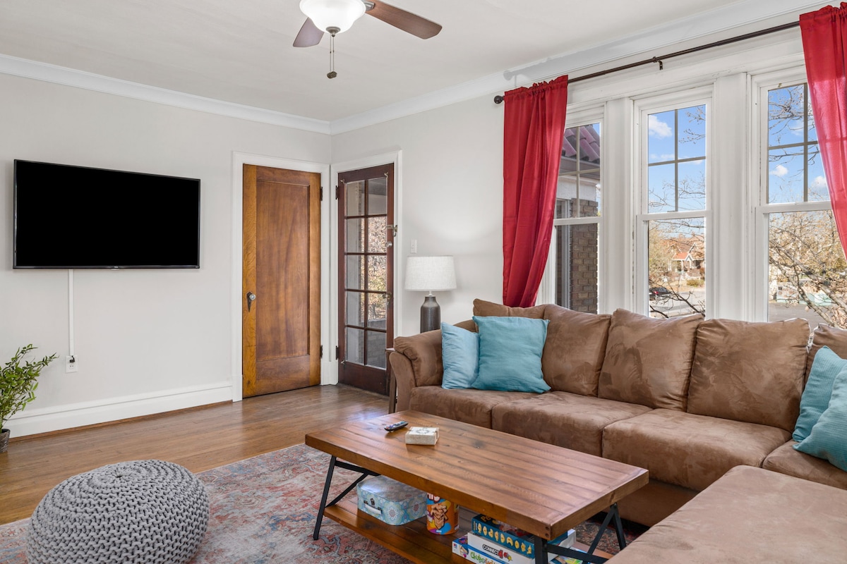 Boligen var ikke ledig de seneste 12 måneder. Nyd dit ophold i denne komfortable og historiske lejlighed i anden sal i et af St. Louis Citys sikreste nabolag! Denne bolig har en central beliggenhed, en kort gåtur eller køretur fra parker, restauranter og lokale attraktioner. Minutter væk fra alt! Denne rummelige bolig på 1400 kvadratmeter er fuld af varm og indbydende boho-chic indretning. King memory foam seng og queen Casper hybridmadras. Fuldt udstyret køkken og kaffebar. Wi-fi og parkering er inkluderet!