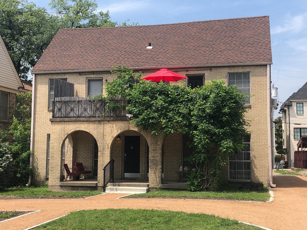 Nyd Greenville Avenue, Knox-Henderson, Uptown & Lakewood. Udforsk Northpark Mall & White Rock Lake. Stille nabolag med adgang til 75 og Mockingbird, Dart-jernbanen og nem rideshare til nattelivet. Hjemmet er vidunderligt for par, familier, forretningsrejsende og soloeventyrere. Din 700 kvadratmeter store side af 1 seng, 1 fuldt badeværelse duplex er privat og har et fuldt udstyret køkken med komfortabel king memory foam seng og fuld størrelse sovesofa.