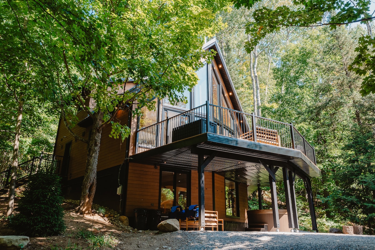 Velkommen til Muskoka A-frame, den perfekte ferie for par eller soloferie. Slap af i *SPA-BADEKARRET**. Vågn op til svajende trætoppe, spil brætspil og lyt til plader ved pejsen med udsigt over skoven. Denne klassiske A-hytte fra 70'erne er blevet genskabt til den moderne verden. Bo der, eller brug det som base for eventyr året rundt. Tag på vandretur, gå med snesko eller langrendsski i Limberlost, stå på ski/snowboard i Hidden Valley, løb på skøjter gennem Arrowhead-skoven og besøg Huntsville for restauranter, bryggerier og lokale faciliteter