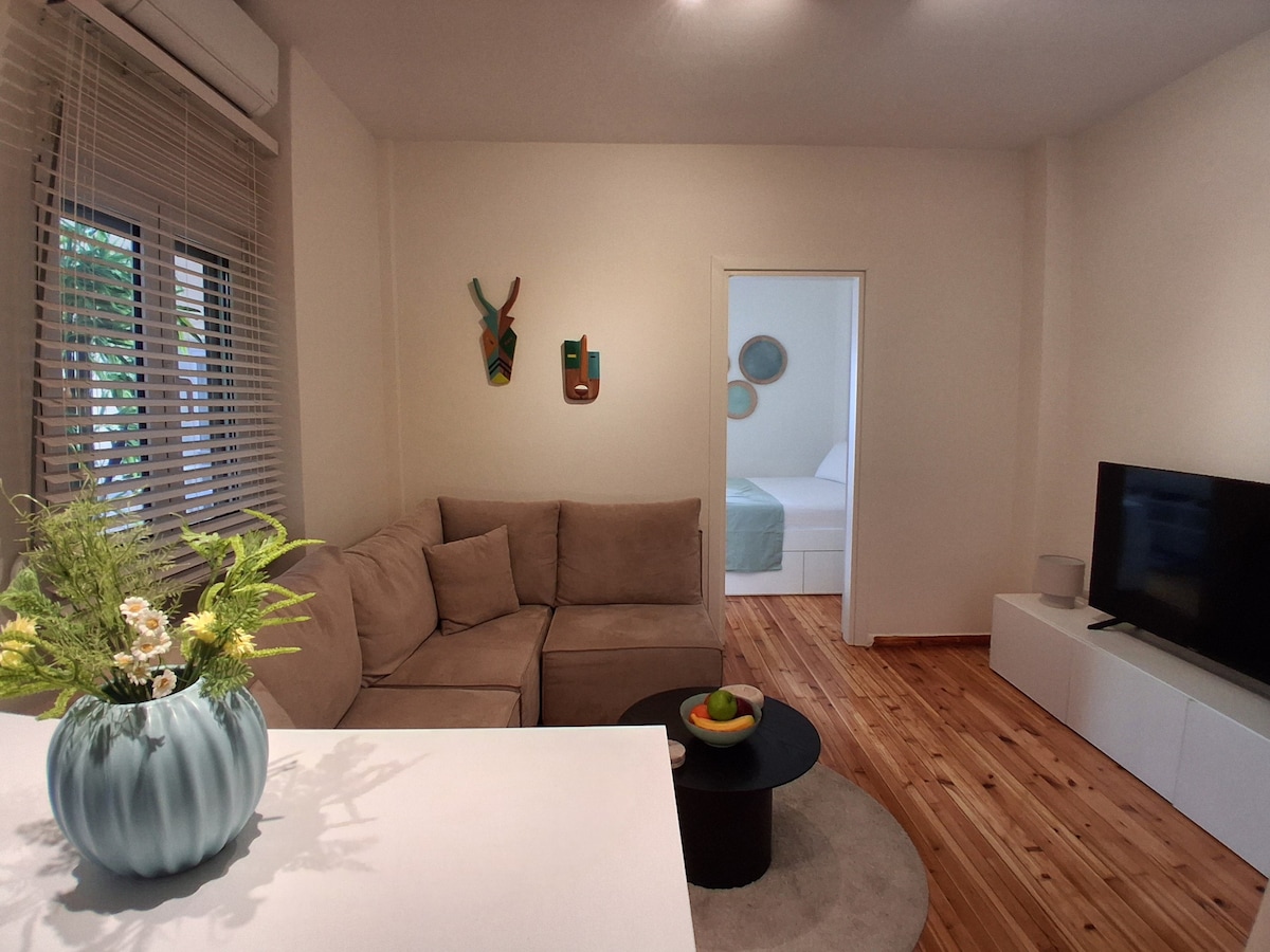 I hjertet af Thessalonikis universitetscampus, lige ved byens centrum, 450 meter fra metrostationen og Kaftantzoglio Olympiastadion, finder du en fuldt renoveret, udstyret, 27 kvm hyggelig, etværelses lejlighed, der tilbyder en afslappende og komfortabel indkvartering. Ideel til gæster, der rejser med bil, da der er direkte adgang til motorvejen, gratis gadeparkering, som normalt er tilgængelig i en maks. radius på 50 m. Ikke stærkt anbefalet til strand- eller sommerdestinationer, men stadig et stop.