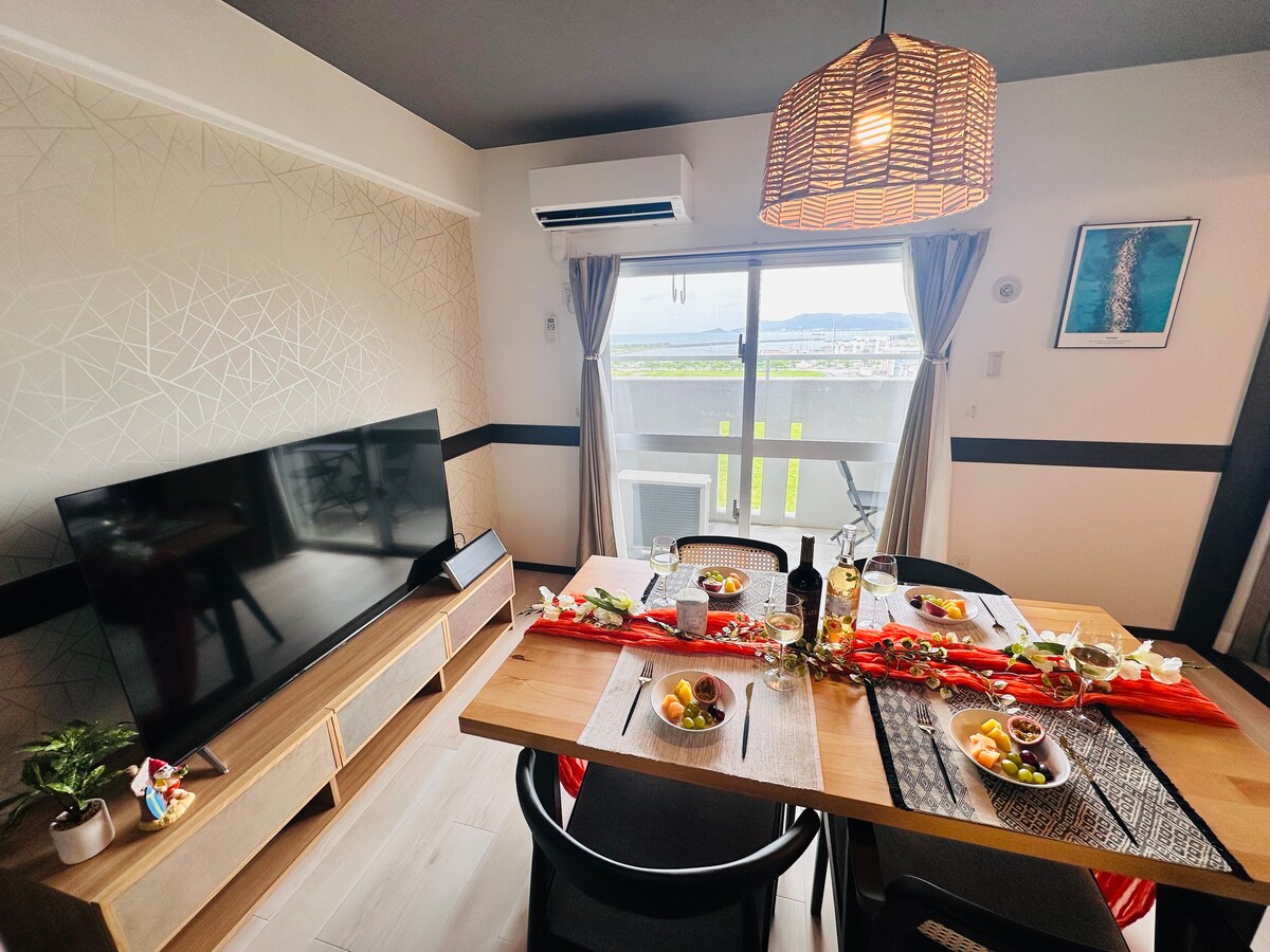 10 minutter i bil fra Naha Lufthavn! Kokusai-dori ligger 10 minutters kørsel derfra. Elegant afslapning med havudsigt ^ ^♪ ☆☆☆Månedlig/ugentlig rabat☆☆☆ [Stedet har plads til 5 personer!] 4 enkeltsenge 1 sovesofa Lav to enkeltsenge. Vi gør det til en kingsize-seng. Soveværelset ved siden af stuen kan åbnes og lukkes, så du kan lide♪ Sofaen er også en stor størrelse i udlandet, så hvis du har et stort antal personer, kan 1 person sove der ^^♪ Starbucks-kaffekapsler er også gratis♪ Nyd havet ved Okinawa i elegance☆☆☆ Vi har også en projektor til "Aladdin 2", Du kan slappe af på sofaen☆☆☆ Der er masser af køkkenredskaber, så hvorfor ikke tilbringe din tid, som om du boede i Okinawa?♪