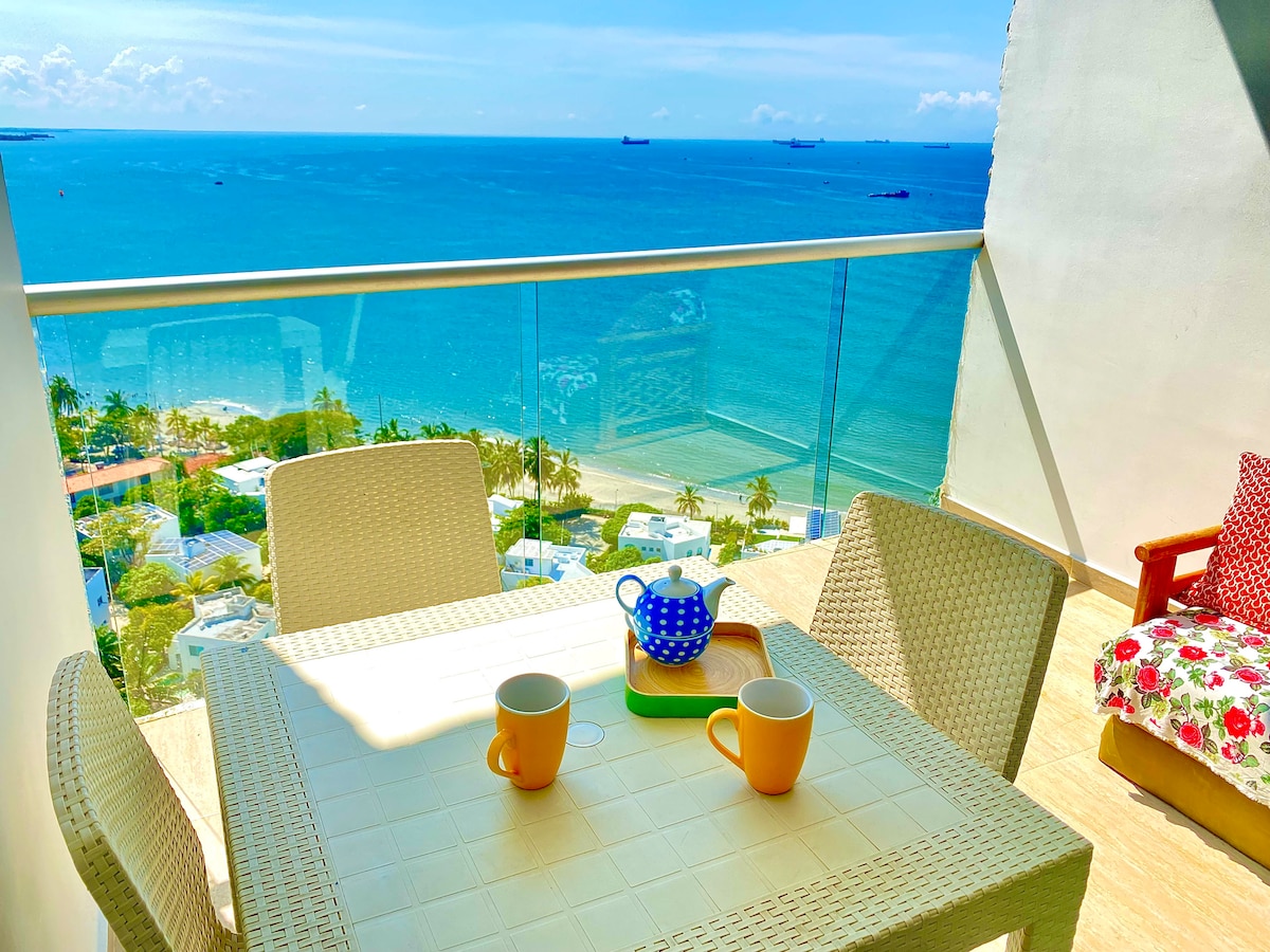 Ny lejlighed ved havet og naturreservatet Pozos Colorados. Imponerende strandudsigt og uovertruffen beliggenhed: 300 m fra stranden, 5 minutter fra lufthavnen og tæt på restauranter, indkøbscentre og den ikoniske Rodadero. Faciliteter af høj kvalitet: Værelser med dobbelt aircondition, sociale og private badeværelser med varmt vand, stue med sovesofa og adgang til altan med panoramaudsigt. Fuldt udstyret køkken, Smart TV. Pool og sikkerhed 24/7. Lev en unik oplevelse i Santa Marta!