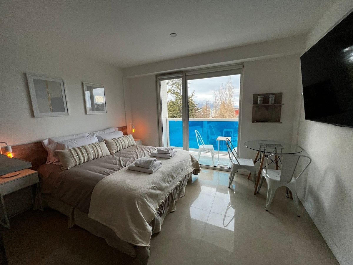 Modern Studio Apartment. With a large window to the Bay of Ushuaia. Only 5 blocks from downtown. In one of the quietest neighborhoods in the city. You will love my place because of the environment, the park, the brightness and the neighborhood. My accommodation is good for friends and adventurers.