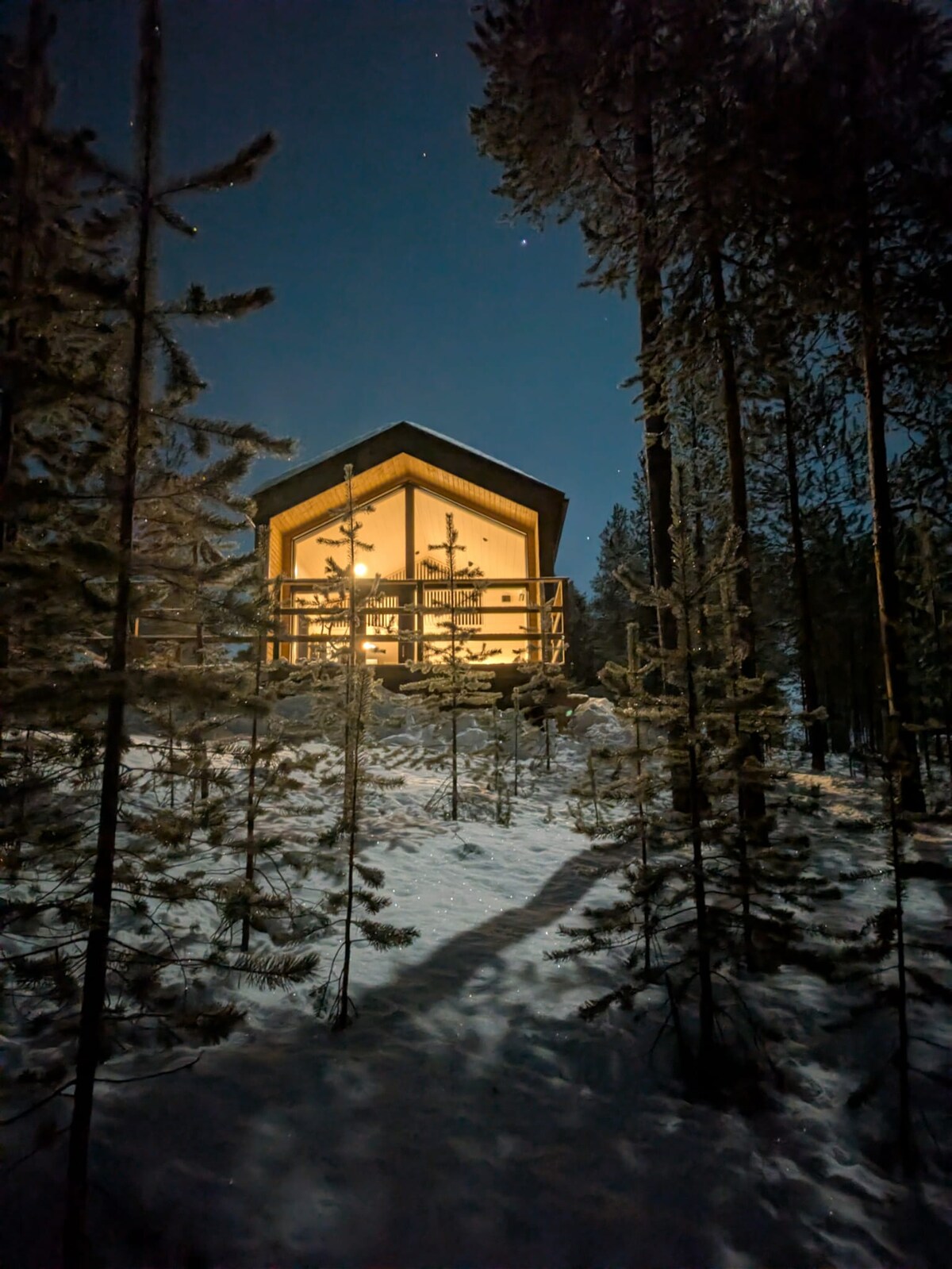 Hytten ligger 200 m fra den fælles parkeringsplads. Der er en hytte med el og 3 soveværelser. Hytten er rummelig og familievenlig. Der er ikke rindende vand, men der er vand i dåser. Har et udendørs toilet. Natvandet består af flere gode fiskesøer, hvor der bl.a. fiskes en dejlig aborre. Fantastisk område for dem, der kan lide jagt, fiskeri og bærplukning. Det er muligt at booke en scootertur (ekstra omkostninger) for at besøge en rensdyrflok tæt på hytten. Dette er for januar-april.