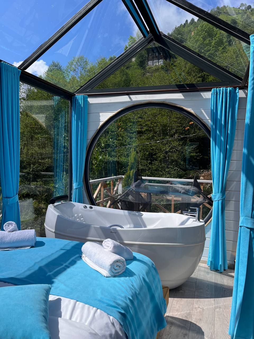 Det populære A-rammehuskoncept er en af vores faciliteter. Vores bungalow er en ekstremt ideel mulighed for dem, der ønsker en behagelig og fredelig ferie. Vores bungalow ligger i naturen og er en fantastisk mulighed for en rolig og rolig ferie. Vores bungalow, som har udsigt over floden, havet, skoven og kystbyen, lover dig en smuk ferie under dit ophold med sine populære faciliteter.