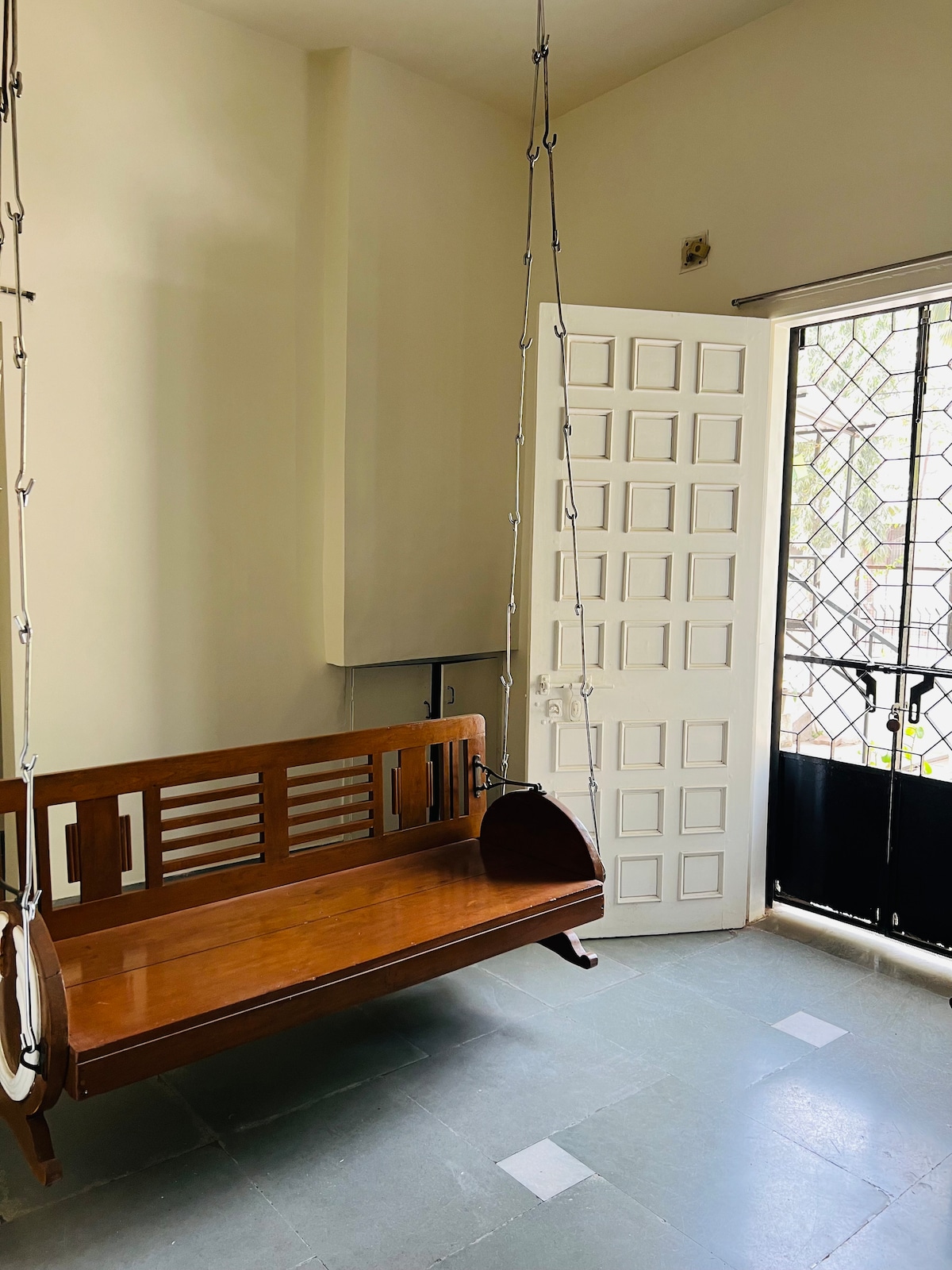 Nyd en stilfuld oplevelse i denne centralt beliggende bolig. I hjertet af byen, hvor alt er tilgængeligt, men alligevel meget fredeligt. En 2BHK-bungalow med masser af plads til at gå rundt. Et must, især for familier, der besøger Vadodara og ønsker at have deres eget rum i en kort periode, men økonomisk ... Det vil du elske: En rummelig bungalow med masser af plads til at slappe af. Prime Location: Beliggende i byens hjerte, tæt på store attraktioner, shopping og spisemuligheder.