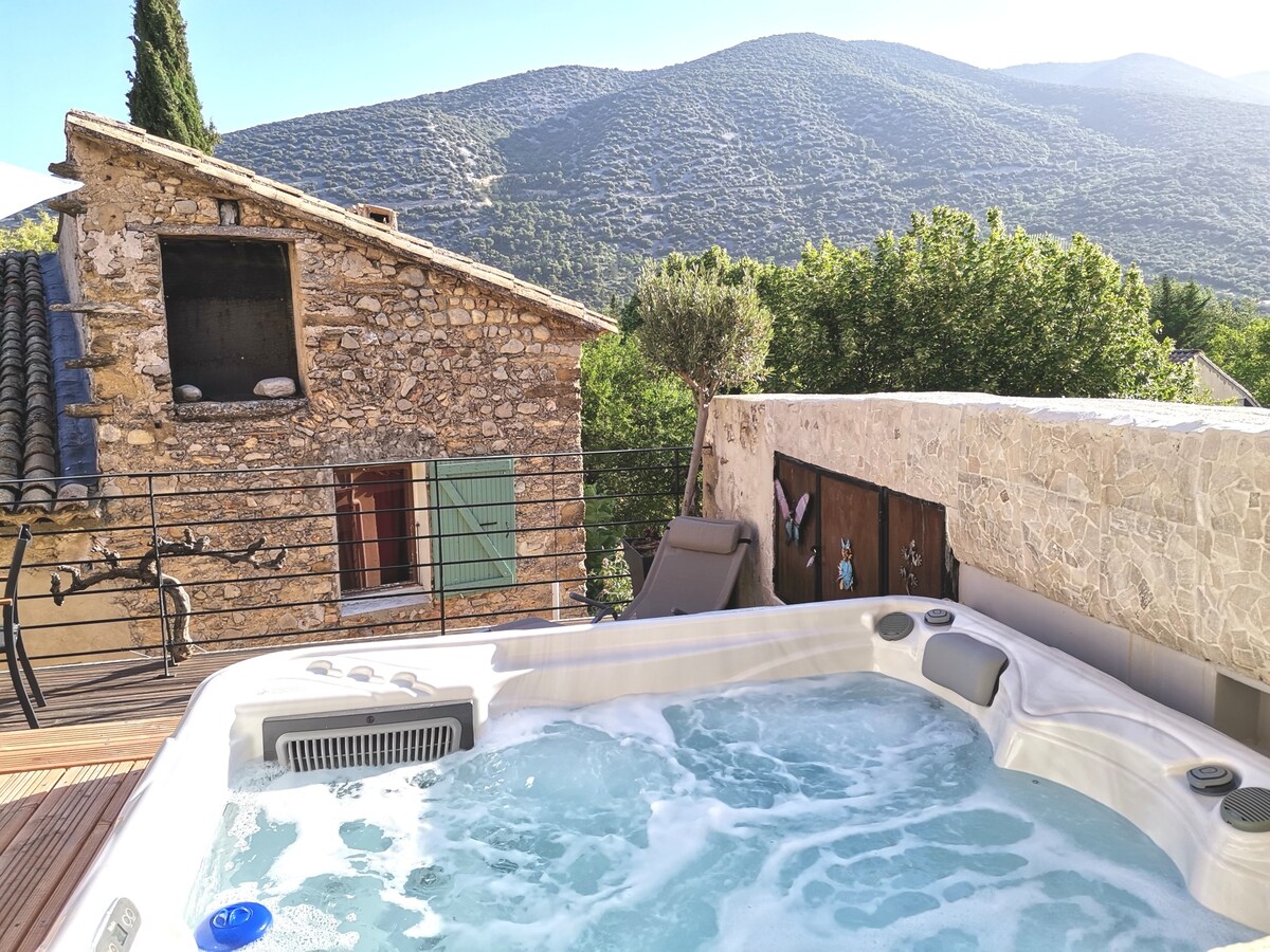 Charmerende hus klassificeret 3**** med udendørs områder. Smukke typiske og rolige provencalske omgivelser ved foden af Gorges du Toulourenc (swimming-Randata )/Terrasse + Stor spa til 5 personer. Afslappende "strand", panoramaudsigt over bjergene, vinstokke og olivenlunde. Inkluderet, en stor stue-stue - podiekøkken, smukt badeværelse - brusekabine, 2 soveværelser, alle apparater og service, aircondition , havemøbler, grill, tv, hi-fi, solsenge. Talrige steder og autentiske markeder.