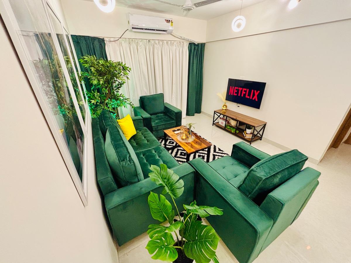 Er du i forretningsøjemed i byen hos BKC? Eller måske leder du efter et sted tæt på det amerikanske generalkonsulat? Denne frodige, moderne 2-værelses lejlighed er det perfekte svar. Denne moderne lejlighed er godt forbundet med Mumbai's hotteste sted, blot 8 minutters kørsel fra den hippe og trendy Bandra, lover denne moderne lejlighed luksus med levende farver for en glad oplevelse. 8 minutter til den indenlandske og den internationale lufthavn 7 minutter til det amerikanske generalkonsulat 7 minutter fra Jio World Centre 7 minutter fra NMACC