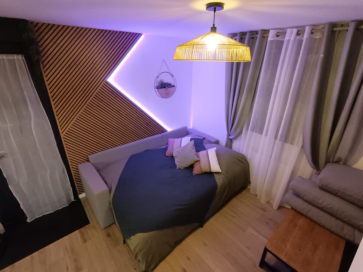 Appartement cosy type T2 avec grande terasse fermée, jacuzzi privatif 4 place et jardin avec tonnelle cocooning. il dispose d'une cuisine tout équipée pour les grillades et apéro entre amis Tout confort. Wifi gratuit Entièrement insonorisé Climatisation réversible Entrée autonome Sans vis a vis. Possibilité d'ajout romantique anniversaire mariage, St Valentin ou occasion spéciale..