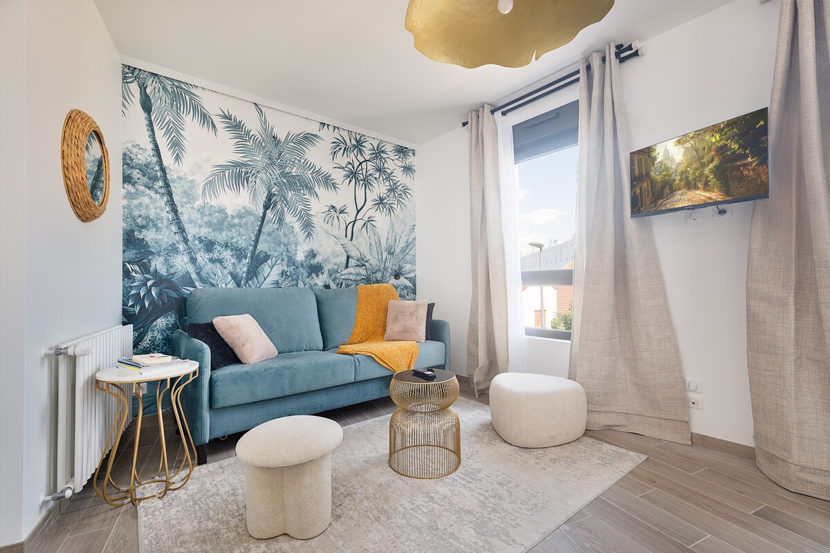 Moderne studiolejlighed med balkon i Asnières-sur-Seine (32m²), ideel til professionelle og turister i nærheden af Paris. Velkommen til vores varme og pletfri studie, gennemtænkt administreret af Victoria og Abdel. Perfekt til både forretningsrejsende og turister, dette studie tilbyder en unik blanding af komfort, sikkerhed og en ideel beliggenhed til at udforske Paris og La Défense-forretningsdistriktet.