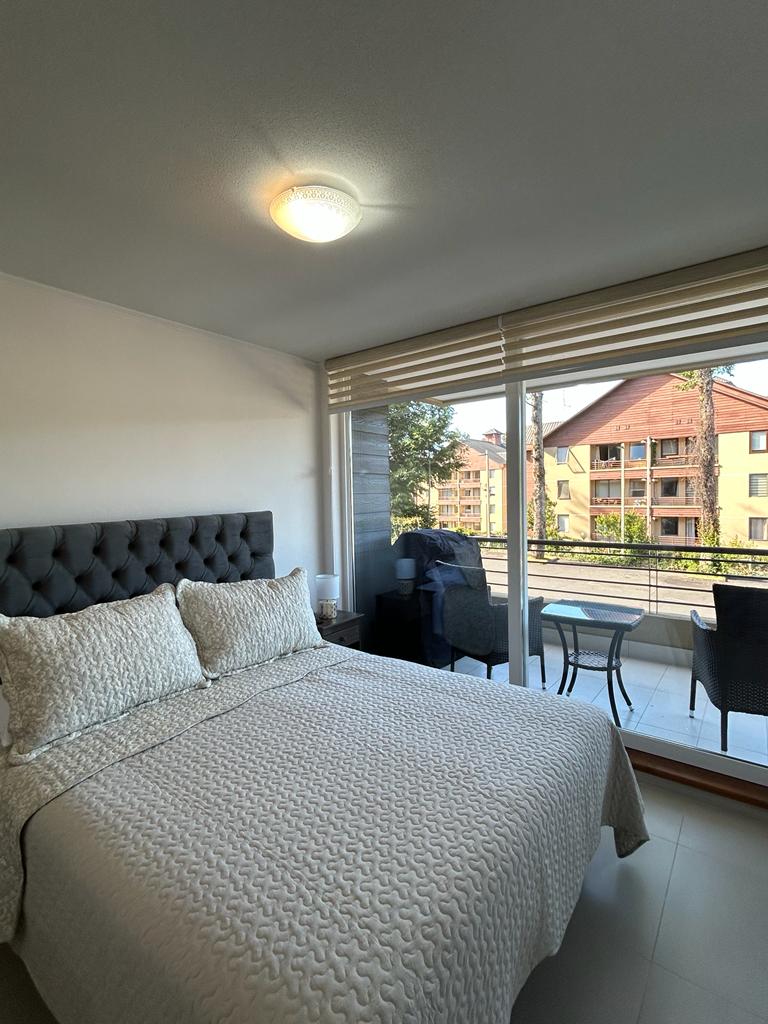Slap af på et sted med smukke grønne områder, på vej til vulkanen km 1 nær midten af himlen og centro de pucon. Fuldt udstyret lejlighed, 1 soveværelse med en kingsize-dobbeltseng. Stue med sovesofa til 2 børn, opvarmning, Wi-Fi, TV, parkering, terrasse og pool. Klubhus : Elektroniske spil til børn Træningsrum, cykler (gratis). tinajas, quincho (ekstra omkostninger) vaskeri (vaskemaskine og tørretumbler) ekstra omkostninger (500 pesos mønter) Concierge 24/7